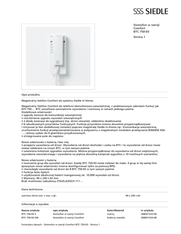 Domofon w wersji Comfort BTC 750-03 Strona 1
