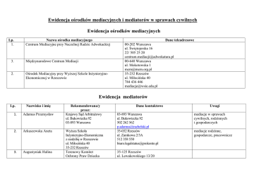 Ewidencja ośrodków mediacyjnych i mediatorów w sprawach