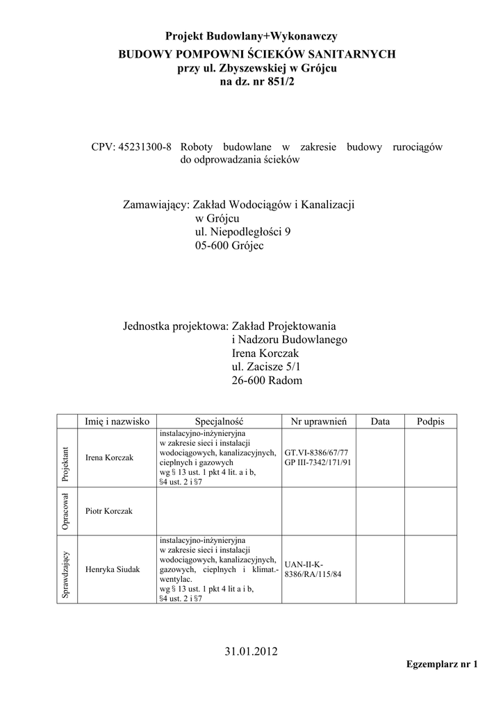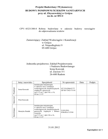 Projekt Budowlany+Wykonawczy BUDOWY POMPOWNI ŚCIEKÓW