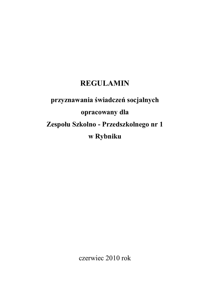 REGULAMIN przyznawania świadczeń socjalnych opracowany dla