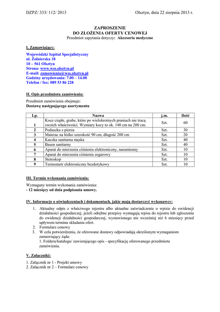 DZPZ/ 333/ 112/ 2013 Olsztyn, dnia 22 sierpnia 2013 r