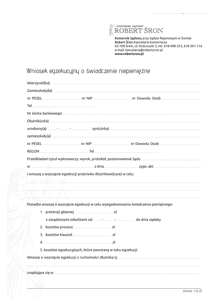 Wniosek egzekucyjny o świadczenie niepieniężne
