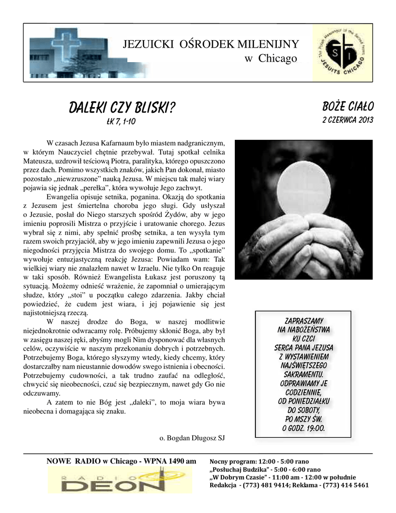 Niedziela 2 czerwca 2013 - Polscy Jezuici w Chicago
