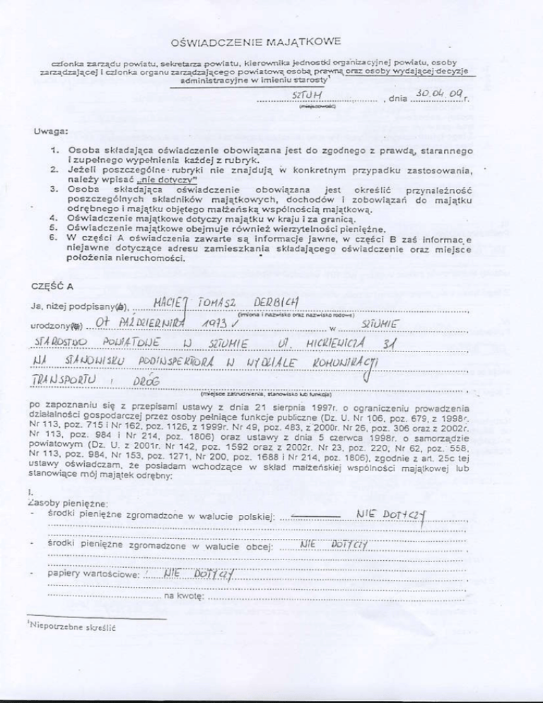 lv cz?6.i A osai"dczenia zaMde sl infomecje Fwde, w cze3ci B z:3 info.mace
