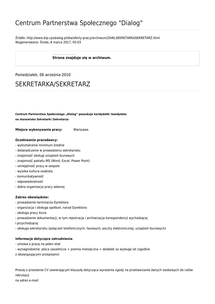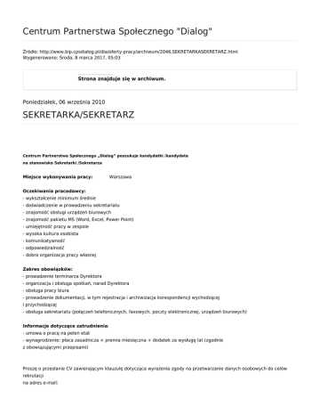 SEKRETARKA/SEKRETARZ - Centrum Partnerstwa Społecznego