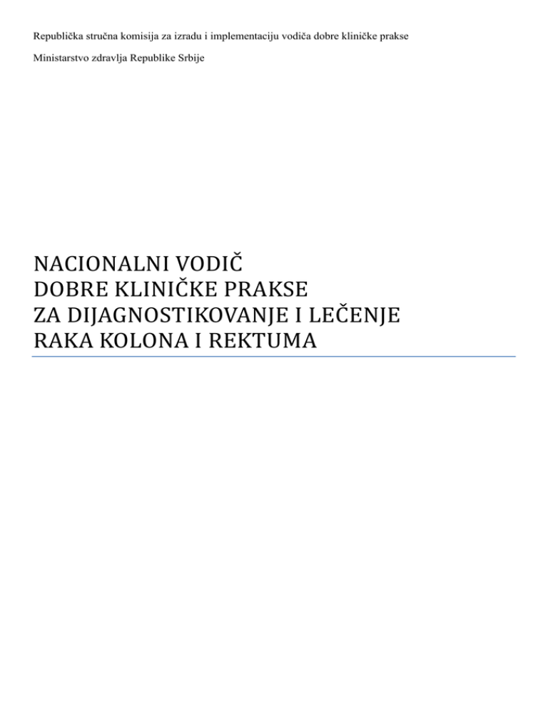 NAPOMENA: Delovi vodiča su preuzeti iz monografije „Karcinom rektuma“ Prof Dr Zorana Krivokapića koju