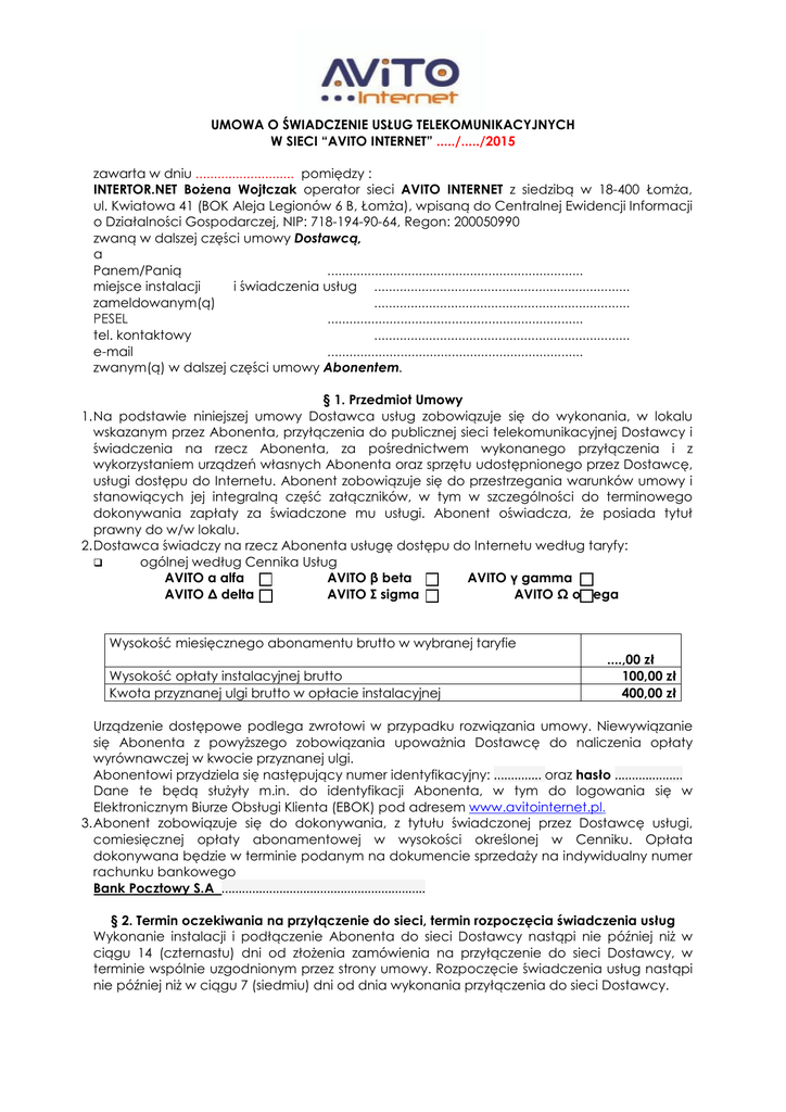 Umowę - Witamy na stronie AViTO Internet