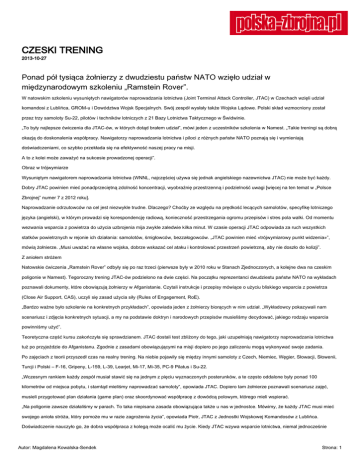 CZESKI TRENING 2013-10-27 Ponad pół tysiąca żołnierzy z dwudziestu państw NATO wzięło udział w międzynarodowym szkoleniu „Ramstein Rover”. W natowskim szkoleniu wysuniętych nawigatorów naprowadzania lotnictwa (Joint Terminal Attack Controller, JTAC) w Czechach wzięli udział komandosi z Lublińca, GROM-u i Dowództwa Wojsk Specjalnych. Swój zespół wysłały także Wojska Lądowe. Polski skład wzmocniony został przez trzy samoloty Su-22, pilotów i techników lotniczych z 21 Bazy Lotnictwa Taktycznego w Świdwinie. „To były najlepsze ćwiczenia dla JTAC-ów, w których dotąd brałem udział”, mówi jeden z uczestników szkolenia w Namest. „Takie treningi są dobrą okazją do doskonalenia współpracy. Nawigatorzy naprowadzania lotnictwa i piloci z różnych państw NATO poznają się i wymieniają doświadczeniami, co szybko przekłada się na efektywność naszej pracy na misji. A to z kolei może zaważyć na sukcesie prowadzonej operacji”. Obraz w trójwymiarze Wysuniętym nawigatorem naprowadzania lotnictwa (WNNL, najczęściej używa się jednak angielskiego nazewnictwa JTAC) nie może być każdy. Dobry JTAC powinien mieć ponadprzeciętną zdolność koncentracji, wyobraźnię przestrzenną i podzielność uwagi [więcej na ten temat w „Polsce Zbrojnej” numer 7 z 2012 roku]. Naprowadzanie odrzutowców na cel jest niezwykle trudne. Dlaczego? Choćby ze względu na prędkość lecących samolotów, specyfikę lotniczego języka (angielski), w którym prowadzi się korespondencję radiową, konieczność przestrzegania ogromu przepisów i stres pola walki. Od momentu wezwania wsparcia z powietrza do użycia uzbrojenia mija zwykle zaledwie kilka minut. W czasie operacji JTAC odpowiada za ruch wszystkich statków powietrznych w rejonie ich działania: samolotów, śmigłowców, bezzałogowców. „JTAC powinien mieć «trójwymiarowy punkt widzenia»”, mówią żołnierze. „Musi uważać na własne wojska, dobrze wskazać cel ataku i kontrolować przestrzeń powietrzną, aby nie doszło do kolizji”. Z aniołem stróżem Natowskie ćwiczenia „Ramstein Rover” odbyły się po raz trzeci (pierwsze były w 2010 roku w Stanach Zjednoczonych, a kolejne dwa na czeskim poligonie w Namest). Tegoroczny trening JTAC-ów podzielono na dwie części. Na początku reprezentanci dwudziestu państw NATO na wykładach poznawali dokumenty, które obowiązują żołnierzy w Afganistanie. Czytali instrukcje i przepisy mówiące o użyciu bliskiego wsparcia z powietrza (Close Air Support, CAS), uczyli się zasad użycia siły (Rules of Engagement, RoE). „Bardzo ważne było szkolenie na konkretnych przykładach”, opowiada jeden z żołnierzy biorących w nim udział. „Wykładowcy pokazywali nam scenariusz i zdjęcia konkretnych sytuacji, a my na podstawie doktryn i narodowych przepisów musieliśmy decydować, jakiego rodzaju wsparcia powinniśmy użyć”. Teoretyczna część kursu zakończyła się sprawdzianem. JTAC dostali test zbliżony do tego, jaki uzupełniają nawigatorzy naprowadzania lotnictwa tuż po przyjeździe do Afganistanu. Zgodnie z zasadami obowiązującymi na misji dopiero po jego zaliczeniu mogą wykonywać swoje zadania. Po zajęciach z teorii przyszedł czas na realny trening. Na niebie pojawiły się między innymi samoloty z Czech, Niemiec, Węgier, Słowacji, Słowenii, Turcji i Polski – F-16, Gripeny, L-159, L-39, Learjet, Mi-17, Mi-35, PC-9 Pilatus i Su-22. „Wczesnym rankiem każdy zespół musiał stawić się na jednym z pięciu wyznaczonych posterunków, a te często oddalone były ponad 100 kilometrów od miejsca pobytu, i stamtąd mieliśmy naprowadzać samoloty”, opowiada JTAC. Dopiero tam żołnierze poznawali scenariusz zajęć, musieli przygotować plan działania (game plan) oraz skoordynować współpracę z dowódcą polowym, którego mieli wspierać. „Na poligonie zawsze działaliśmy w parach. To taka niepisana zasada obowiązująca także u nas w jednostce. Mówimy, że każdy JTAC musi mieć swojego anioła stróża, który pomoże mu w razie zagrożenia życia”, opowiada Piotr, JTAC z Jednostki Wojskowej Komandosów z Lublińca. Doświadczenie nauczyło go, że dobra współpraca z kolegą może ocalić mu życie. Kiedy JTAC wzywa wsparcie lotnictwa, niemal jednocześnie Autor: Magdalena Kowalska-Sendek Strona: 1 rozmawia z pilotem i swoim dowódcą. „Czasami bardziej zajmuje nas to, co dzieje się w powietrzu niż na ziemi. A kiedy koncentrujemy się na swoich obowiązkach, nie widzimy tego, co nam zagraża”. Zdarzyło się już, że medyk, który towarzyszył mu podczas naprowadzania, w ostatniej chwili odepchnął go, ratując przed ostrzałem przeciwnika, w ten sposób ocalił mu życie. Trening praktyczny w Namest trwał blisko dwa tygodnie. Żołnierze byli podzieleni na zespoły i musieli działać w tandemach. Każdy team codziennie naprowadzał samoloty około dwóch godzin. W sumie wszyscy nawigatorzy wykonali tysiąc kontroli powietrznych, czyli naprowadzeń samolotów na cel. Jak pod Hindukuszem Scenariusze ćwiczeń podczas „Ramstein Rover” odzwierciedlają wyłącznie realia afgańskie. Żołnierze musieli na przykład osłaniać konwój logistyczny, który na trasie wjechał na minę pułapkę i został ostrzelany przez rebeliantów. Innym razem trzeba było zlikwidować skład broni i amunicji przeciwnika. A jeszcze w innej sytuacji osłaniali konwój z VIP-em albo musieli namierzyć, gdzie znajdują się rebelianci, którzy ostrzeliwali bazę. Dodatkowo większość zadań połączona była z treningiem medycznej ewakuacji rannego żołnierza z pola walki z użyciem śmigłowców. „Ze wszystkimi zdarzeniami, które trenowaliśmy, spotkałem się już w Afganistanie. To ważne, by w wielonarodowej grupie przećwiczyć pewne schematy. JTAC musi być pewien, że postępuje właściwie. To on ponosi odpowiedzialność za konsekwencje na przykład ostrzelania obiektu”, wyjaśni