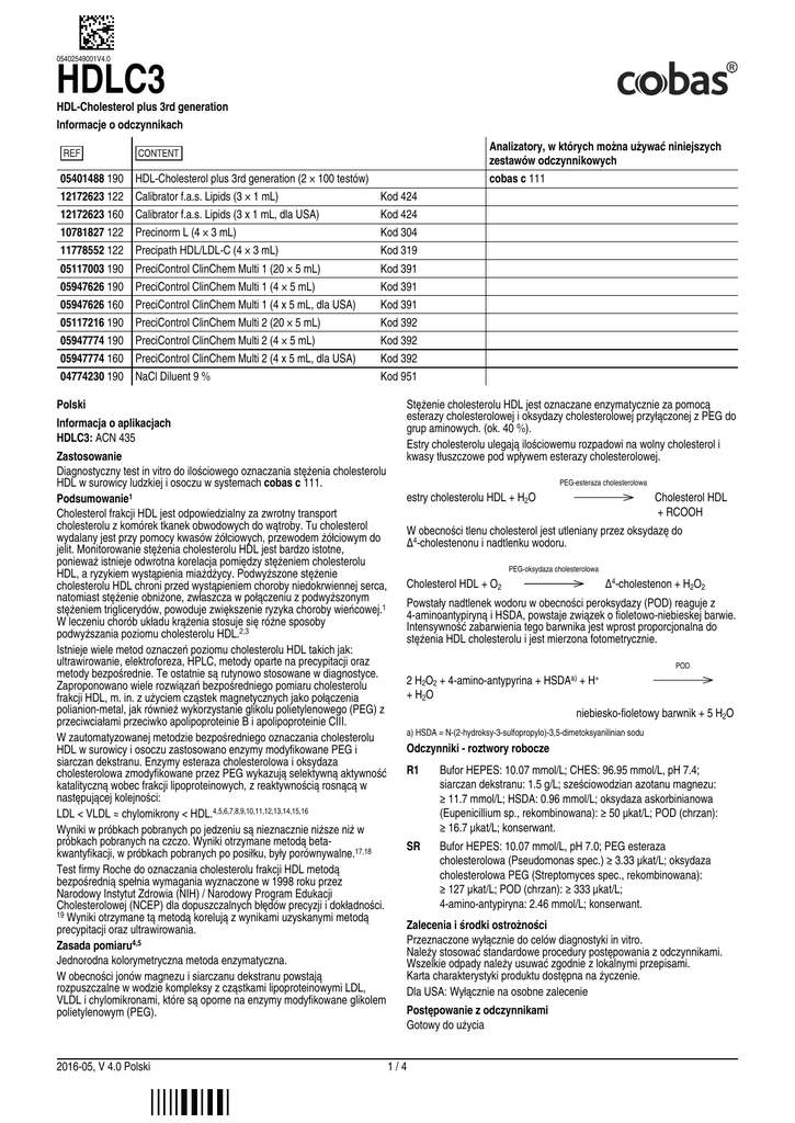 HDL w surowicy ludzkiej i osoczu w systemach cobas c 111.