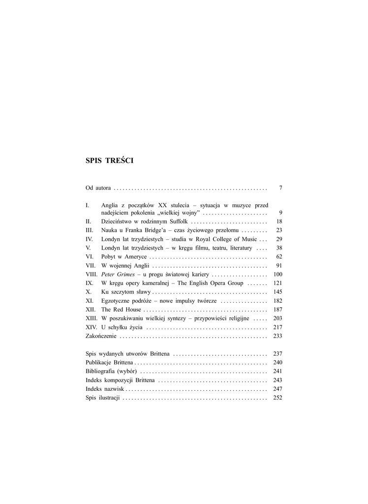 SPIS TREŚCI Od autora . . . . . . . . . . . . . . . . . . . . . . . . . . . . . . . . . . . . . . . . . . . . . . . . . . . . 7 Anglia z pocza˛tków XX stulecia – sytuacja w muzyce przed nadejściem pokolenia „wielkiej wojny” . . . . . . . . . . . . . . . . . . . . . . II. Dzieciństwo w rodzinnym Suffolk . . . . . . . . . . . . . . . . . . . . . . . . . . III. Nauka u Franka Bridge’a – czas życiowego przełomu . . . . . . . . . IV. Londyn lat trzydziestych – studia w Royal College of Music . . . V. Londyn lat trzydziestych – w kre˛gu filmu, teatru, literatury . . . . VI. Pobyt w Ameryce . . . . . . . . . . . . . . . . . . . . . . . . . . . . . . . . . . . . . . . . VII. W wojennej Anglii . . . . . . . . . . . . . . . . . . . . . . . . . . . . . . . . . . . . . . . VIII. Peter Grimes – u progu światowej kariery . . . . . . . . . . . . . . . . . . . IX. W kre˛gu opery kameralnej – The English Opera Group . . . . . . . X. Ku szczytom sławy . . . . . . . . . . . . . . . . . . . . . . . . . . . . . . . . . . . . . . . XI. Egzotyczne podróże – nowe impulsy twórcze . . . . . . . . . . . . . . . . XII. The Red House . . . . . . . . . . . . . . . . . . . . . . . . . . . . . . . . . . . . . . . . . . XIII. W poszukiwaniu wielkiej syntezy – przypowieści religijne . . . . . XIV. U schyłku życia . . . . . . . . . . . . . . . . . . . . . . . . . . . . . . . . . . . . . . . . . Zakończenie . . . . . . . . . . . . . . . . . . . . . . . . . . . . . . . . . . . . . . . . . . . . . . . . . . 9 18 23 29 38 62 91 100 121 145 182 187 203 217 233 Spis wydanych utworów Brittena . . . . . . . . . . . . . . . . . . . . . . . . . . . . . . . . Publikacje Brittena . . . . . . . . . . . . . . . . . . . . . . . . . . . . . . . . . . . . . . . . . . . . . Bibliografia (wybór) . . . . . . . . . . . . . . . . . . . . . . . . . . . . . . . . . . . . . . . . . . . Indeks kompozycji Brittena . . . . . . . . . . . . . . . . . . . . . . . . . . . . . . . . . . . . . Indeks nazwisk . . . . . . . . . . . . . . . . . . . . . . . . . . . . . . . . . . . . . . . . . . . . . . . . Spis ilustracji . . . . . . . . . . . . . . . . . . . . . . . . . . . . . . . . . . . . . . . . . . . . . . . . . 237 240 241 243 247 252 I.