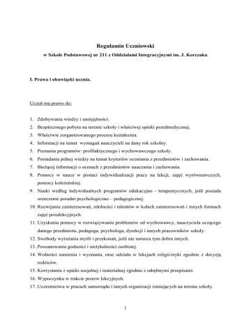 Regulamin Uczniowski - Szkoła Podstawowa nr 211 z Oddziałami