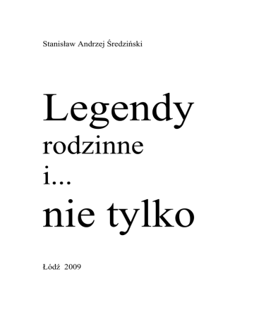 Stanisław Andrzej Średziński Legendy rodzinne i... nie tylko Łódź 2009 Z amiast wstępu Jestem chory, albo raczej połamany, czyli : taka sobie kaleka. Dzwonię codziennie do mojej siostry Teresy, która i tak ma tysiące zajęć, i która ratując się przed moim natręctwem wymyśliła „wspominki rodzinne”. Wiedziała co robi, bo zawsze fascynowały mnie wspomnienia. Kolekcjonowałem pamiątki, układałem w pamięci opowieści zdarzenia.... Myślałem że kiedyś powstanie z tego taki „rodzinny podręcznik”. Okazało się jednak, że nie wszyscy sobie tego życzą. Nie znam powodów i zupełnie mnie nie interesują ale właśnie dlatego ograniczam moje bazgroły jedynie do faktów i opowieści, które pamiętam, lub które dawno temu usłyszałem od mojej ukochanej Babuni Zofii zostawiając pamiętniki Dziadka Stanisława i jego opowieści innym... Niech nam papier lekkim będzie... A ponieważ to zdarzenia i opowieści zasłyszane niemal półwiecze temu, wybaczcie, że nie będę ich weryfikował a jedynie przedstawię jako rodzinną legendę. Podobno w każdej legendzie jest ziarno prawdy, przeto czytajcie i - jeśli taka wasza wola - szukajcie tego ziarna wszędzie gdzie tylko można. Jeśli jednak zrobicie to tylko dlatego by okazać się lepszymi od innych to nie czytajcie tego wcale i nie szukajcie bo legenda jest czasami jak diabelskie złoto : z wierzchu połyskliwe a w środku matowe, niewdzięczne i więcej dające pragnień niż korzyści. Przepraszając więc, za nadużywanie mojej ulubionej staropolszczyzny zapraszam do lektury. Stanisław Andrzej Średziński I. Pra, pra ... dziadek królem Polski ? Kiedy miałem osiem lat, w wyniku kłopotów okołoporodowych u mojej cioci Stefanii, żony Antoniego, przebywałem przez kilka tygodni, wraz z babcią Zofią w Tomaszowie Mazowieckim. Mały chłopak wyrwany nagle z domowego „ciepełka” i wrzucony do innego miasta i do innej szkoły to bardzo dramatyczne przeżycie, które pamiętać będę do końca moich lat . Ale nie jest to przedmiotem tej opowieści. W trakcie tego pobytu, wraz z moją babcią bywałem w willi „Ciotki Czarneckiej”1, naszej dalekiej krewnej . Pamiętam jakieś stare meble ,obrazy... Ja, małolat, nudziłem się strasznie ale panie rozmawiały bardzo ożywione. Potem szybko wracaliśmy do domu na Warszawską a moja babcia była jakby zamyślona i zde1 Nie znam dokładnych danych więc ten cudzysłów. Podobno dom ten został potem przekazany na ... dom dziecka lub inną placówkę a syn wymienionej działał aktywnie w harcerstwie... nerwowana... Niedługo potem wracaliśmy równie szybko do Łodzi bo dziadek Stanisław Woskowski, mąż babci, dostał paraliżu i leżał w szpitalu. Dopiero po pewnym czasie, wtulony w objęcia ukochanej babuni przy „małym piecu„ na Więckowskiego dowiedziałem się co było przyczyną jej ówczesnej gorączkowej reakcji. Z opowieści ciotki Czarneckiej wynikało, że nasza rodzina po linii babci Zofii pochodzi z rodu Poniatowskich, związanych bardzo blisko z ostatnim królem Rzeczpospolitej. Nie byłoby w tym nic szczególnego bo ród Poniatowskich był liczny i jak podają różne źródła, znany z intelektu i elokwencji, szczególnie w sprawowaniu różnorodnych urzędów, ale ta historia to kolejna niespodzianka po rewelacjach Mariana Brandysa2 i znanej wszyskim historii Józefa Poniatowskiego3 Podobno kolejny Poniatowski – nasz praprzodek – był wysokim urzędnikiem na terenie 2 Marian Brandys „ Nieznany książe Poniatowski „ (oddzielne informacje w folderze – Stanisław Poniatowski ) 3 Józef Antoni Poniatowski książę herbu Ciołek (ur. 7 maja 1763 w Wiedniu, zm. 19 października 1813 pod Lipskiem), polski generał, minister wojny i Wódz Naczelny Wojsk Polskich Księstwa Warszawskiego, marszałek Francji. niemieckich ksiąstewek i niezależnie od swojej woli uczestniczył w tworzeniu państwa niemieckiego. Kto chce niech zanurzy się w daty ale na pierwszy rzut oka widać że „rodzinka” była aktywna w Rosji, Austrii , Francji więc i w Prusach jej aktywność była logiczna i zrozumiała. Należy jednak pamiętać, że tu historia jest bardziej skomplikowana... Podstawą tworzenia Niemiec była silna dominacja nad wszelkimi nacjami narodowymi na tym terenie. Likwidowano wszystko co nie germańskie. I właśnie dlatego – jak podobno twierdziła Ciotka Czarnecka – nasz potomek , dobrze prosperujący urzędowo i finansowo, dla dobra rodziny , zmienił nazwisko, by nie kłuć w oczy swoimi polskimi koneksjami. Odtąd nazwisko PONIATOWSKI zostało zamienione na RYCHTER. Dlaczego nie Richter (sędzia)? Nie znam języka niemieckiego i do tej pory nie widzę róźnicy między rychterem a richterem ale dociekanie tych spraw pozostawiam młodym. RYCHTEROWIE, jako dobrze ustawiona rodzina wiedliby bogate i spokojne życie ale ... Pan Otto Bismarck postawił na jedno: jeden naród jedna religia. Tego już nasz przodek nie mógł zaakceptować. Polak w papierach i do tego jeszcze katolik był nie do zaakceptowania ale jak można zmienić wiarę ?! Pan Otto był nieubłagalny i nie dał wiele czasu do podjęcia decyzji. Nasza rodzina musiała wybierać. Nazwisko – trudno, ale religia ! Jednej nocy spakowano wszystko co dało się umieścić w bagażach nie wzbudzających podejrzeń i ... Jak twierdziły obie panie i jak myślę ja: wielkiego majątku nie zabrano bo wpadłoby to w oczy Niemców. Rodzina rozproszyła się potem by uniknąć ewentualnych konsekwencji. Prawdopodobnie osiedli tam gdzie mogli się ukryć. Młodzi zaczęli zarabiać i to bardzo różnie. Jedni zostali dobrymi rzemieślnikami. Inni jechali na Syberię skąd przywozili cenne futra i... po drodze piękne żony z Gruzji i Armenii. 4 Jeszcze inni nie mieli tego szczęścia. Po ucieczce szybko zmarli zostawiając wdowy z dziećmi, w żałobie i biedzie. .. Wdowy zaś szukały miejsca tam gdzie choćby ostatnie grosze pozwalały na, w miarę godne życie ..
