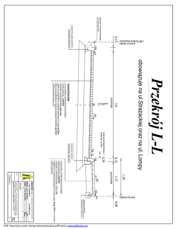 granica działki (.istn.ściana budynku) 0,15 A+8 A+5 Przekrój L-L 2% A-5 A-7 ściek przykrawężnikowy z kostki bet. gr.6cm A+3 0,30 0,15 obowiązuje na ul.Strażackiej oraz na ul. Lompy 5,0 proj.droga A krawężnik bet.15x30x100 1,50 1,35 proj.chodnik 2% Niemodlin A+6 A+8 0,08 ława betonowa z betonu B-15 obrzeże bet. 8x30x100 DROGTOM Opole, ul. Chełmska 9/2 , tel./fax 077 55 15 593 - nawierzchnia z kostki betonowej imitująca kostkę kamienną - grub.8cm - podsypka z miału kamiennego - grub. 3 cm - podbudowa z kamienia łamanego 0-31,5 mm - grub. 15 cm (25cm na wjazdach) - podoże gruntowe ława betonowa z betonu B-15 granica działki pobocze z kamienia łamanego 0-31,5mm gr.15cm krawężnik bet. najazdowy15x22x100 ława betonowa z betonu B-15 nawierzchnia drogi - w-wa ścieralna z kostki betonowej imitująca kostkę kamienną - grub.8cm - podsypka z miału kamiennego grub. 3cm - górna w-wa podbudowy z kamienia łamanego 0-31,5mm gr.25cm - dolna w-wa podbudowy z kamienia łamanego 0-63,00mm gr.25cm - podłoże gruntowe grupy ,,G1'' Lokalizacja Temat Projekt budowlano - wykonawczy przebudowy dróg gminnych ulic: Drzymały, Podwale, Lompy, Strażacka, Kilińskiego, Szewska, Spółdzielcza,Lwicka, Szkolna, Krótka w m. Niemodlin Przekrój L-L PDF stworzony przez wersję demonstracyjną pdfFactory www.pdffactory.pl/ oś jezdni