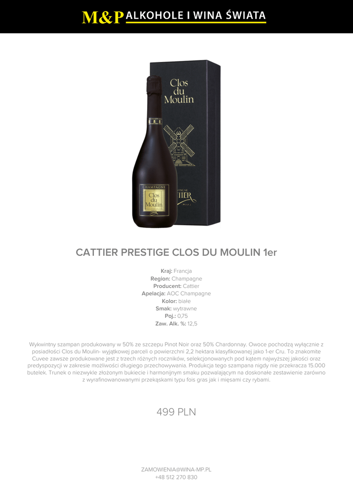 CATTIER PRESTIGE CLOS DU MOULIN 1er 499 PLN