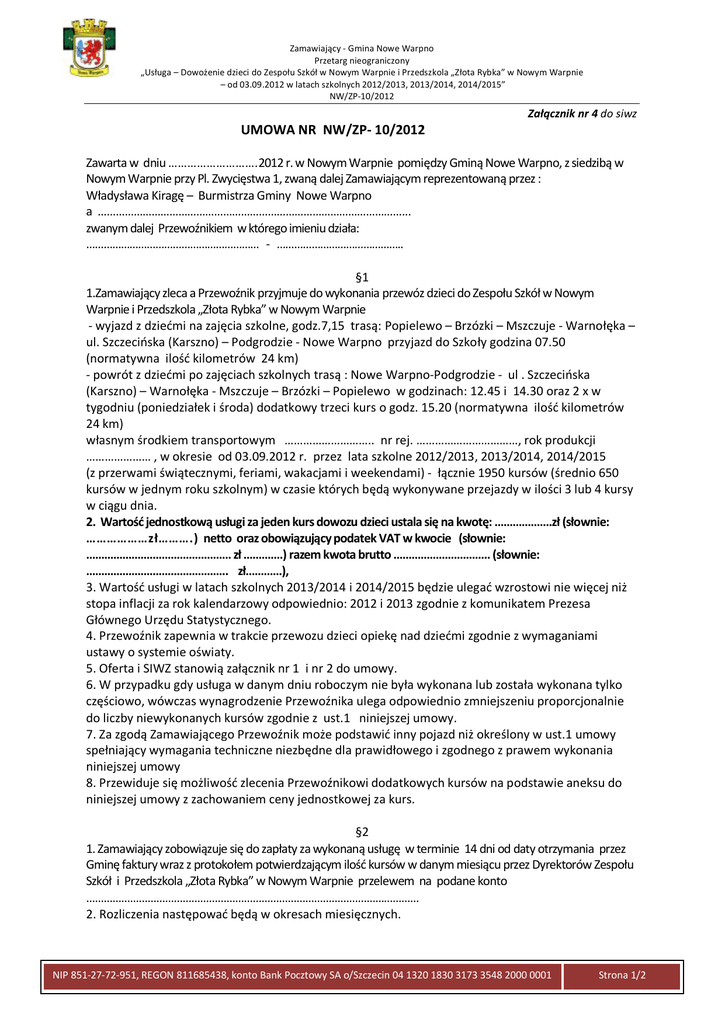 umowa nr nw/zp- 10/2012 - Urząd Gminy Nowe Warpno