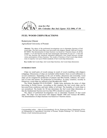 FUEL WOOD CHIPS FRACTIONS Katarzyna Glazar