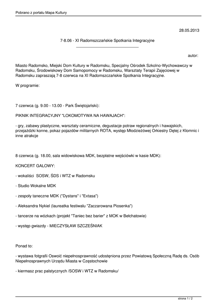 7-8.06 - XI Radomszczańskie Spotkania Integracyjne