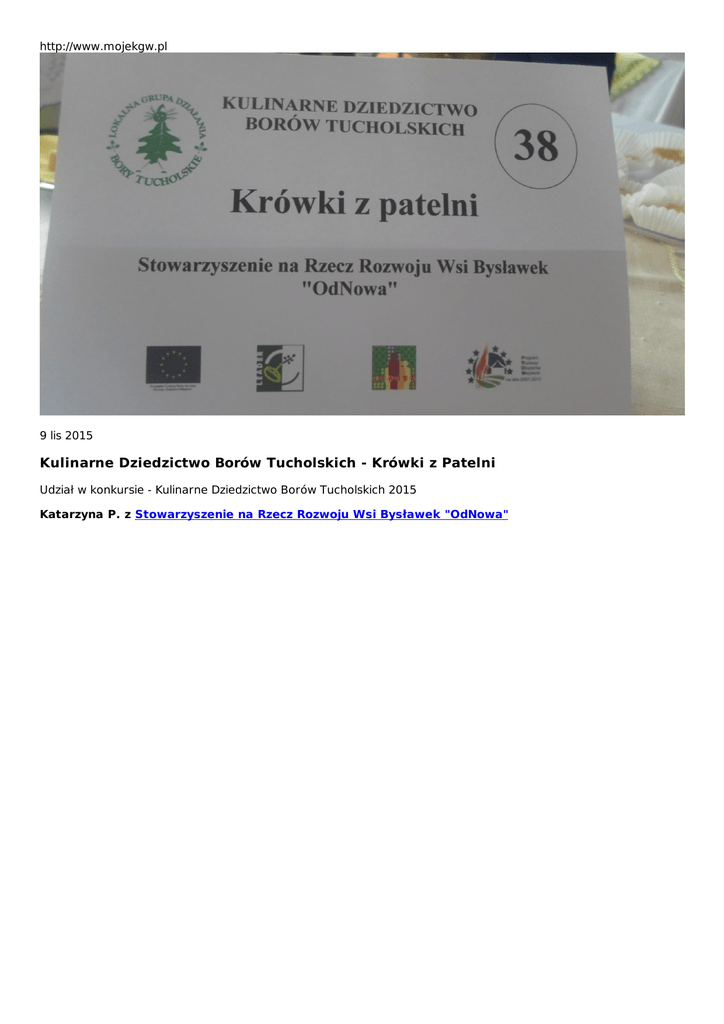 http://www.mojekgw.pl 9 lis 2015 Kulinarne Dziedzictwo Borów Tucholskich - Krówki z Patelni Udział w konkursie - Kulinarne Dziedzictwo Borów Tucholskich 2015 Katarzyna P. z Stowarzyszenie na Rzecz Rozwoju Wsi Bysławek "OdNowa"