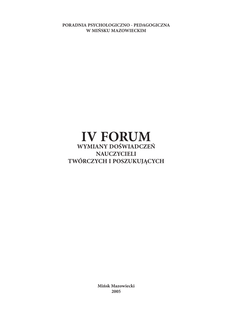 PORADNIA PSYCHOLOGICZNO - PEDAGOGICZNA W MIŃSKU MAZOWIECKIM IV FORUM WYMIANY DOŚWIADCZEŃ NAUCZYCIELI TWÓRCZYCH I POSZUKUJĄCYCH Mińsk Mazowiecki 2005 Wydawca: Poradnia Psychologiczno-Pedagogiczna w Mińsku Mazowieckim Redaguje zespół: Hanna Stefańska, Grażyna Zajdel-Padzik, Joanna Gajda Okładka: projekt graficzny - Konrad Stefański Fotografie: Studio Kodak Waldemar Pokorski ISSN 1644-1036 Skład i druk: Drukarnia NOWATOR 08-110 Siedlce, ul. Warszawska 1 tel. (025) 63-240-94 Wszystkie prace w Biuletynie mają taką postać, w jakiej przedstawili je Autorzy. Nie dokonano żadnej selekcji ani skrótów. Zarówno formalna, jak i merytoryczna zawartość prac jest całkowicie autorska. REDAKCJA 2005 FORUM - (4) 3 PORADNIA PSYCHOLOGICZNO-PEDAGOGICZNA 05-300 Mińsk Mazowiecki, ul. Dąbrówki 8, tel./fax (0-prefix-25) 758-57-98, tel. (0-prefix-25) 758-42-10 NIP 822-10-46-039 e-mail: [email protected] www.powiatminski.pl\oswiata\FORUM HONOROWY PATRONAT Mazowiecki Kurator Oświaty Starosta Miński PROGRAM KONFERENCJI IV FORUM WYMIANY DOŚWIADCZEŃ NAUCZYCIELI TWÓRCZYCH I POSZUKUJĄCYCH 14 kwietnia 2005r. 10 45 Rejestracja obecności uczestników. 1100 Otwarcie IV Forum Wymiany Doświadczeń Nauczycieli Twórczych i Poszukujących – mgr Hanna Michalska dyrektor Poradni Psychologiczno-Pedagogicznej w Mińsku Mazowieckim. Wystąpienie Gości Honorowych 1115 Prezentacja programu „DEMOSTENES” – mgr Hanna Stefańska, mgr Grażyna Zajdel-Padzik - Poradnia Psychologiczno-Pedagogiczna w Mińsku-Maz. 1130 „Wpływ uczenia na osiągnięcia szkolne ucznia, czyli jak uczyć lepiej” mgr Małgorzata Taraszkiewicz – Centralny Ośrodek Doskonalenia Nauczycieli w Warszawie 1215 „Selekcja społeczna, a kariera szkolna ucznia” mgr Jarosław Domalewski Uniwersytet im. M. Kopernika w Toruniu 1300 „Klasa plastyczna w Miejskiej Szkole Artystycznej I0 w Mińsku-Maz.” – mgr Krzysztof Rusiecki 1315 „Dobra szkoła na wsi” – prezentacja Zespołu Szkół Agrotechnicznych w Janowie - mgr Danuta Miraszewska 1330 - 1400 Przerwa. 1400 – 1600 Praca w grupach panelowych. 4 FORUM - (4) 2005 mgr Hanna Stefańska - neurologopeda mgr Grażyna Zajdel-Padzik - pedagog „DEMOSTENES” PROGRAM DOBREJ KOMUNIKACJI „Najlepszym dowodem oświecenia narodu jest wydoskonalenie, czystość i dokładność jego mowy, bo w niej jest skład wszystkich myśli i całej jego nauki” J. Śniadecki Komunikacja - to cytuję za Słownikiem Wyrazów Obcych PWN ... „porozumiewanie się, przekazywanie myśli, udzielanie wiadomości. Słownik Współczesnego Języka Polskiego dodaje jeszcze ... „to porozumiewanie się za pomocą języka” Czy zatem komunikacja słowna, werbalna, językowa jest w naszym społeczeństwie zadawalająca? Obserwując i słuchając jak mówią nasze dzieci, młodzież, dorośli, wydaje nam się, że w tej dziedzinie jest wiele do poprawienia. Chociażby media. Trudno nie zauważyć nieprawidłowego języka telewizji, pełnego przeróżnych potworków artykulacyjnych, powtarzanych potem przez społeczeństwo. Dziś z taką łatwością ulegając modzie mówimy „sorry”, „ok.”, „nie ściemniaj”, „sie ma”, daj czadu”, „póki co”. „Póki co” jest np. rusycyzmem, który można zastąpić rodzimym „na razie”, „tymczasem”. Elity każdego kraju, a więc dziennikarze, prezenterzy, urzędnicy, nauczyciele powinni tworzyć wzorce godne naśladowania, również i te dotyczące komunikacji. Anglicy wiedzą, że język oksfordzki jest wzorcowy i wyżej wymienione grupy zawodowe mogą się nim posługiwać bez obawy. Czy w Polsce jest taki wzór godny naśladowania? Język naszych elit stał się raczej spontaniczny, wieloraki. Kto np. zwraca dziś uwagę na akcent, intonację, czy prawidłowo ustawiony tor oddechowy? Próg świadomości językowej społeczeństwa, oraz zwykłe niechlujstwo w mówieniu bardzo utrudnia nam zrozumienie tekstu mówionego. Przyczyn tego stanu należy również upatrywać w coraz to częstszej komunikacji drogą elektroniczną i zastępowaniem słowa mówionego – pisaniem. Ta forma porozumiewania się ma niewątpliwie zalety: szybkość, łączność z wieloma osobami oddalonymi od siebie, łatwy dostęp do informacji. Niestety odziera z duszy potencjalnych interlokutorów zubożając przez to jakość komunikacji. Wstydliwą rzeczą jest robić błędy ortograficzne, natomiast nieznajomość zasad poprawnej wymowy nie wzbudza ogólnej dezaprobaty. A przecież stąd już tylko krok do zaniku języka polskiego w życiu publicznym. 2005 W polskich szkołach nauczyciele zachęcają uczniów do korzystania ze słowników ortograficznych, rzadziej natomiast informują o istnieniu słowników ortoepicznych (wymowy) zawierających informacje o poprawnym brzmieniu wyrazów. W ogóle nie istnieje program nauczania komunikacji w szkołach, program który zawierałby kształcenie umiejętności werbalnych i niewerbalnych, które są na równi ważne w całym procesie porozumiewania się. A przecież 70% czasu jakim dysponujemy poza snem, przeznaczamy na porozumiewanie się w różny sposób. Z tego na mówienie przypada 32%, a na słuchanie 42-57%. Aby w przyszłości posługiwać się wzorcowym językiem polskim, poprawną polszczyzną, umieć słuchać oraz porozumiewać się stosując kryteria doboru metod komunikowania w zależności od sytuacji, dzisiejsi uczniowie powinni na równi z wiedzą matematyczną, biologiczną, informatyczną zgłębiać tajniki wiedzy skutecznych metod mówienia i słuchania. Nie posiadając umiejętności dobrej komunikacji nie jesteśmy w stanie prawidłowo funkcjonować w życiu codziennym i zawodowym. To jacy jesteśmy wynika z jakości wzajemnych kontaktów. W ten sposób zdobywamy wiedzę, przyjaciół, rozwijamy język, własną wrażliwość, po prostu doskonalimy się. „Demostenes” - jest właśnie programem, który stara się przekazać młodzieży zasady dobrej komunikacji. Uwrażliwić ją na potrz