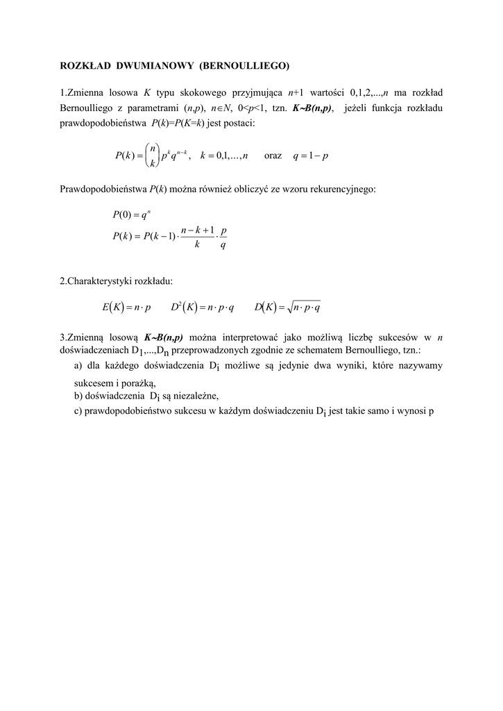 ROZKŁAD DWUMIANOWY (BERNOULLIEGO) 1.Zmienna losowa K