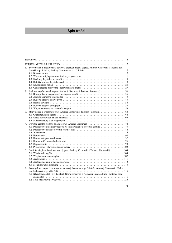 Spis treści Przedmowa . . . . . . . . . . . . . . . . . . . . . . . . . . . . . . . . . . . . . . . . . . . . . . . . . . . . . . . . . . . . . . 6 CZE˛ŚĆ I. METALE I ICH STOPY . . . . . . . . . . . . . . . . . . . . . . . . . . . . . . . . . . . . . . . . . . . . 1. Teoretyczna i rzeczywista budowa czystych metali (oprac. Andrzej Ciszewski i Tadeusz Radomski p. 1.1Ŧ1.4, Andrzej Szummer p. 1.5 i 1.6) . . . . . . . . . . . . . . . . . . . . . . . . . . . 1.1. Budowa atomu . . . . . . . . . . . . . . . . . . . . . . . . . . . . . . . . . . . . . . . . . . . . . . . . . . . . 1.2. Wia˛zania mie˛dzyatomowe i mie˛dzycza˛steczkowe . . . . . . . . . . . . . . . . . . . . . . . . . . . . . 1.3. Struktury krystaliczne metali . . . . . . . . . . . . . . . . . . . . . . . . . . . . . . . . . . . . . . . . . . . 1.4. Defekty struktur krystalicznych . . . . . . . . . . . . . . . . . . . . . . . . . . . . . . . . . . . . . . . . . 1.5. Krystalizacja metali . . . . . . . . . . . . . . . . . . . . . . . . . . . . . . . . . . . . . . . . . . . . . . . . . 1.6. Odksztađcenie plastyczne i rekrystalizacja metali . . . . . . . . . . . . . . . . . . . . . . . . . . . . . 2. Budowa stopów metali (oprac. Andrzej Ciszewski i Tadeusz Radomski) . . . . . . . . . . . . . . . . 2.1. Rodzaje faz wyste˛puja˛cych w stopach metali . . . . . . . . . . . . . . . . . . . . . . . . . . . . . . . . 2.2. Analiza termiczna i reguđa faz . . . . . . . . . . . . . . . . . . . . . . . . . . . . . . . . . . . . . . . . . . 2.3. Budowa stopów podwójnych . . . . . . . . . . . . . . . . . . . . . . . . . . . . . . . . . . . . . . . . . . . 2.4. Reguđa dźwigni . . . . . . . . . . . . . . . . . . . . . . . . . . . . . . . . . . . . . . . . . . . . . . . . . . . . 2.5. Budowa stopów potrójnych . . . . . . . . . . . . . . . . . . . . . . . . . . . . . . . . . . . . . . . . . . . . 2.6. Wpđyw struktury na wđasności stopów . . . . . . . . . . . . . . . . . . . . . . . . . . . . . . . . . . . . 3. Stopy żelaza z we˛glem (oprac. Andrzej Ciszewski i Tadeusz Radomski) . . . . . . . . . . . . . . . . 3.1. Charakterystyka żelaza . . . . . . . . . . . . . . . . . . . . . . . . . . . . . . . . . . . . . . . . . . . . . . . 3.2. Ukđad równowagi żelazo-cementyt . . . . . . . . . . . . . . . . . . . . . . . . . . . . . . . . . . . . . . . 3.3. Mikrostruktury stali we˛glowych . . . . . . . . . . . . . . . . . . . . . . . . . . . . . . . . . . . . . . . . . 4. Obróbka cieplna stopów żelaza (oprac. Andrzej Szummer) . . . . . . . . . . . . . . . . . . . . . . . . . 4.1. Podstawowe przemiany fazowe w stali zwia˛zane z obróbka˛ cieplna˛ . . . . . . . . . . . . . . . . 4.2. Podstawowe rodzaje obróbki cieplnej stali . . . . . . . . . . . . . . . . . . . . . . . . . . . . . . . . . 4.3. Wyżarzanie . . . . . . . . . . . . . . . . . . . . . . . . . . . . . . . . . . . . . . . . . . . . . . . . . . . . . . . 4.4. Hartowanie . . . . . . . . . . . . . . . . . . . . . . . . . . . . . . . . . . . . . . . . . . . . . . . . . . . . . . . 4.5. Hartowanie powierzchniowe . . . . . . . . . . . . . . . . . . . . . . . . . . . . . . . . . . . . . . . . . . . 4.6. Hartowność i utwardzalność stali . . . . . . . . . . . . . . . . . . . . . . . . . . . . . . . . . . . . . . . . 4.7. Odpuszczanie . . . . . . . . . . . . . . . . . . . . . . . . . . . . . . . . . . . . . . . . . . . . . . . . . . . . . 4.8. Przesycanie i starzenie stopów żelaza . . . . . . . . . . . . . . . . . . . . . . . . . . . . . . . . . . . . . 5. Obróbka cieplno-chemiczna stali (oprac. Andrzej Ciszewski i Tadeusz Radomski) . . . . . . . . . 5.1. Wiadomości ogólne . . . . . . . . . . . . . . . . . . . . . . . . . . . . . . . . . . . . . . . . . . . . . . . . . 5.2. We˛gloutwardzanie cieplne . . . . . . . . . . . . . . . . . . . . . . . . . . . . . . . . . . . . . . . . . . . . . 5.3. Azotowanie . . . . . . . . . . . . . . . . . . . . . . . . . . . . . . . . . . . . . . . . . . . . . . . . . . . . . . . 5.4. Azotonawe˛glanie i we˛gloazotowanie . . . . . . . . . . . . . . . . . . . . . . . . . . . . . . . . . . . . . 5.5. Metalizowanie dyfuzyjne . . . . . . . . . . . . . . . . . . . . . . . . . . . . . . . . . . . . . . . . . . . . . 6. Przemysđowe stopy żelaza (oprac. Andrzej Szummer p. 6.1Ŧ6.7, Andrzej Ciszewski i Tadeusz Radomski p. 6.8 i 6.9) . . . . . . . . . . . . . . . . . . . . . . . . . . . . . . . . . . . . . . . . . . . . . . 6.1. Klasyfikacja stali wg Polskich Norm zgodnych z Normami Europejskimi i systemy oznaczania stali . . . . . . . . . . . . . . . . . . . . . . . . . . . . . . . . . . . . . . . . . . . . . . . . . . . . . . . 6.2. Stale niestopowe (we˛glowe) . . . . . . . . . . . . . . . . . . . . . . . . . . . . . . . . . . . . . . . . . . . 7 7 7 11 15 18 26 29 36 36 43 45 56 57 59 64 64 65 71 74 75 86 86 90 92 96 99 102 104 104 107 111 112 113 115 115 126 3 6.3. 6.4. 6.5. 6.6. Stale niestopowe (we˛glowe) narze˛dziowe . . . . . . . . . . . . . . . . Stale stopowe . . . . . . . . . . . . . . . . . . . . . . . . . . . . . . . . . . . Stale narze˛dziowe stopowe . . . . . . . . . . . . . . . . . . . . . . . . . . Stale stopowe odporne na korozje˛, żaroodporne, żarowytrzymađe nościach fizycznych . . . . . . . . . . . . . . . . . . . . . . . . . . . . . . 6.7. Staliwa we˛glowe i stopowe . . . . . . . . . . . . . . . . . . . . . . . . . . 6.8. Żeliwa we˛glowe . . . . . . . . . . . . . . . . . . . . . . . . . . . . . . . . . . 6.9. Żeliwa stopowe . . . . . . . . . . . . . . . . . . . . . . . . . . . . . . . . . . ................. ................. ................. i o specjalnych wđas................. ................. ................. ................. 135 138 155 7. Miedź i stopy miedzi (oprac. Andrzej Ciszewski i Tadeusz Radomski) . . . . . . . . . . . . . . . . 7.1. Miedź technicznie czysta . . . . . . . . . . . . . . . . . . . . . . . . . . . . . . . . . . . . . . . . . . . . 7.2. Stopy miedzi . . . . . . . . . . . . . . .