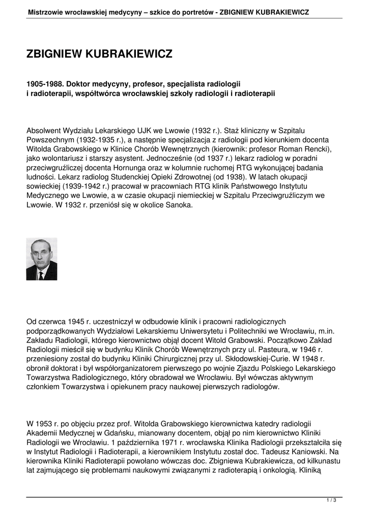 i radioterapii, współtwórca wrocławskiej szkoły radiologii i radioterapii