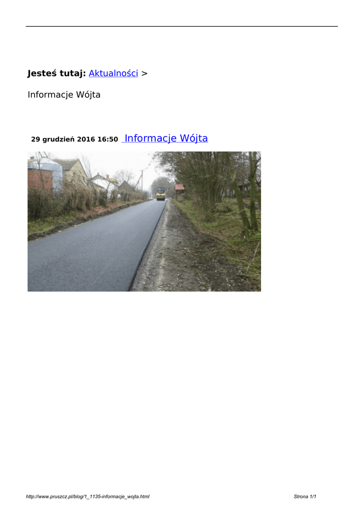 Jesteś tutaj: Aktualności > Informacje Wójta 29 grudzień 2016 16:50 Informacje Wójta http://www.pruszcz.pl/blog/1_1135-informacje_wojta.html Powered by TCPDF (www.tcpdf.org) Strona 1/1