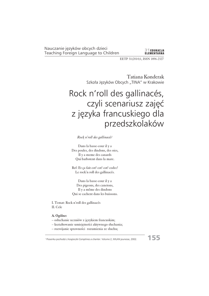 Rock n`roll des gallinacés, czyli scenariusz zajęć z języka