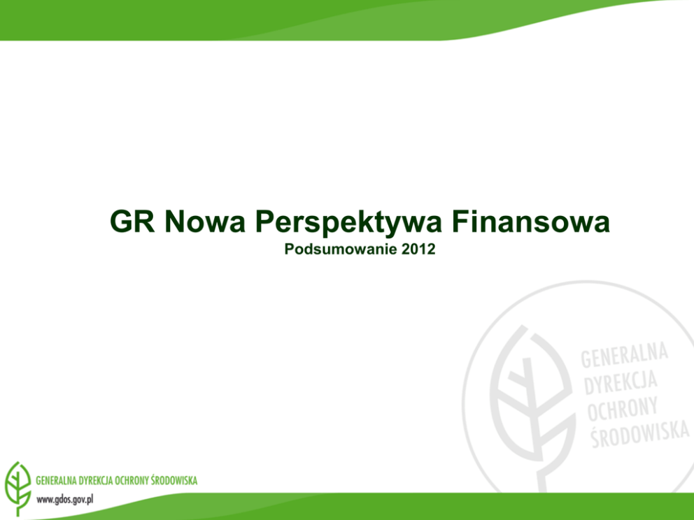 GR Nowa Perspektywa Finansowa Podsumowanie 2012 Plan prezentacji GR Nowa Perspektywa Finansowa Wstęp Lp. Zakres tematyczny 1 Polityka Spójności UE w latach 2014-2020 – najważniejsze wydarzenia związane z procesem programowania. 2 Prace GR Nowa Perspektywa Finansowa w bieżącym roku. Omówienie wyników prac oraz osiągnięć. 3 Przedstawienie planów prac Grupy w przyszłości. Programowanie polityki spójności – najważniejsze wydarzenia (negocjacje) 1 Data Kompromis w zakresie: 20.11.2012 Zarządzania finansowego Wspólnych Ram Strategicznych (WRS). Zarządzania i kontroli Informacji i promocji Pomocy technicznej Instrumentów terytorialnych oraz EWT Rekomendacji Rady dla poszczególnych państw członkowskich. Wskaźników oraz kwestii finansowych poza WFR Instrumentów finansowych oraz partnerstwa publiczno-prywatnego (PPP). Projektów generujących dochód Ram i ocen wykonania Koncentracji tematycznej Dużych projektów Warunkowości ex-ante Systemów zarządzania i kontroli Monitoringu i ewaluacji Programowania strategicznego Kwalifikowalności i trwałości 16.10.2012 26.06.2012 24.04.2011 Należy pamiętać, że kompromisy stanowią tzw. częściowe podejście ogólne Rady i zostały przyjęte zgodnie z zasadą, że nic nie jest ustalone dopóki wszystko nie jest ustalone. Programowanie polityki spójności – struktura prac nad założeniami UP Źródło grafiki: MRR NEGOCJACJE WRF 1 Posiedzenia i Spotkania GR Nowa Perspektywa Finansowa LP. Termin Miejsce spotkania 2 Tematyka spotkania 1. 17-20 kwietnia Hel, Jastrzębia Góra Wizyta studyjna dotycząca najlepszych praktyk dla projektów z obszaru różnorodności biologicznej wraz z warsztatami poświęconymi programowaniu. 2. 9 lipca Warszawa Strategiczna ocena oddziaływania na środowisko – uwarunkowania prawne i praktyczne w Polsce i UE. 3. 12 września Warszawa Warsztaty IEEP w zakresie budowania potencjału dla IZ na temat włączania problematyki zmian klimatu w świetle Polityki Spójności. 4. 8-9 listopada Warszawa Warsztaty dotyczące finansowania różnorodności biologicznej w krajach Grupy Wyszehradzkiej. Spotkanie – Hel (17-20 kwietnia) Nowa Perspektywa Finansowa Przykłady najlepszych praktyk Ochrona różnorodności biologicznej • Negocjacje – stan zaawansowania. • Warsztaty dotyczące finansowania różnorodności biologicznej w nowej perspektywie finansowej. • Fokarium, Park Wydmowy oraz Cypel Helski. • Ochrona podkowca małego w Polsce. • Kanalizacja ruchu turystycznego na obszarze Natura 2000 w Puszczy Sandomierskiej. • Ocena środowiskowa projektów w ramach RPO woj. Pomorskiego. • Komplementarne współistnienie projektów dotyczących ochrony przyrody. • Ochrona siedlisk morskich (+ EFMR). 2 Szkolenie dot. strategicznej oceny oddziaływania na środowisko (9 lipca) Uwarunkowania Prawne SOOŚ Aspekty praktyczne 2 • Prawo międzynarodowe oraz UE. • Kluczowe akty prawa krajowego. • Przedmiot i rola Oceny Strategicznej. • Odstąpienia od przeprowadzania SOOŚ. • Prognoza oddziaływania na środowisko. • Przygotowanie SIWZ • Organizacja procesu (konsultacje społeczne,raport) • Relacja z ewaluacją ex-ante 2 Warsztaty IEEP – zmiany klimatu (12 września) Cele ogólne • Przybliżenie roli przyszłej polityki spójności w promowaniu gospodarki niskoemisyjnej. • Zapoznanie uczestników z propozycjami KE dot. nowych przepisów odnoszących się do zmian klimatu. Operacjonalizacja • Opcje inwestycyjne. • Potencjalne narzędzia oraz instrumenty realizacji polityki. • Przykłady najlepszych praktyk. Zajęcia praktyczne • Opracowanie strategii włączenia problematyki zmian klimatu do programów operacyjnych oraz procesu przygotowywania i wdrażania projektów. Warsztaty dot. różnorodności biologicznej (8-9 listopada) Różnorodność biologiczna 2 • Przedstawienie głównych dokumentów strategicznych. • PAF (Priority Action Framework). • Ekonomiczne aspekty projektów. Finansowanie różnorodności biologicznej w ramach środków UE • V oś priorytetowa PO IiŚ. • Instrument LIFE. Przykłady najlepszych praktyk w państwach Grupy Wyszehradzkiej • Doświadczenia Węgier oraz Bułgarii we wdrażaniu projektów dotyczących różnorodności biologicznej. Plany na przyszłość 3 Wykonanie ekspertyzy: Analiza problematycznych obszarów wdrażania funduszy strukturalnych w kontekście przygotowania Nowej Perspektywy Finansowej. • III kwartał 2013 roku Wizyta studyjna dotycząca realizacji projektu wspierającego poprawę stanu ochrony środowiska na obszarach miejskich/zurbanizowanych • IV kwartał 2013 roku Bieżące śledzenie oraz prezentowanie członkom grupy roboczej wyników prac związanych z programowaniem polityki spójności po 2013 roku w obszarze - środowisko. Źródło zdjęcia: http://office.microsoft.com – galeria Clipart Dziękuję za uwagę 10 grudnia 2012