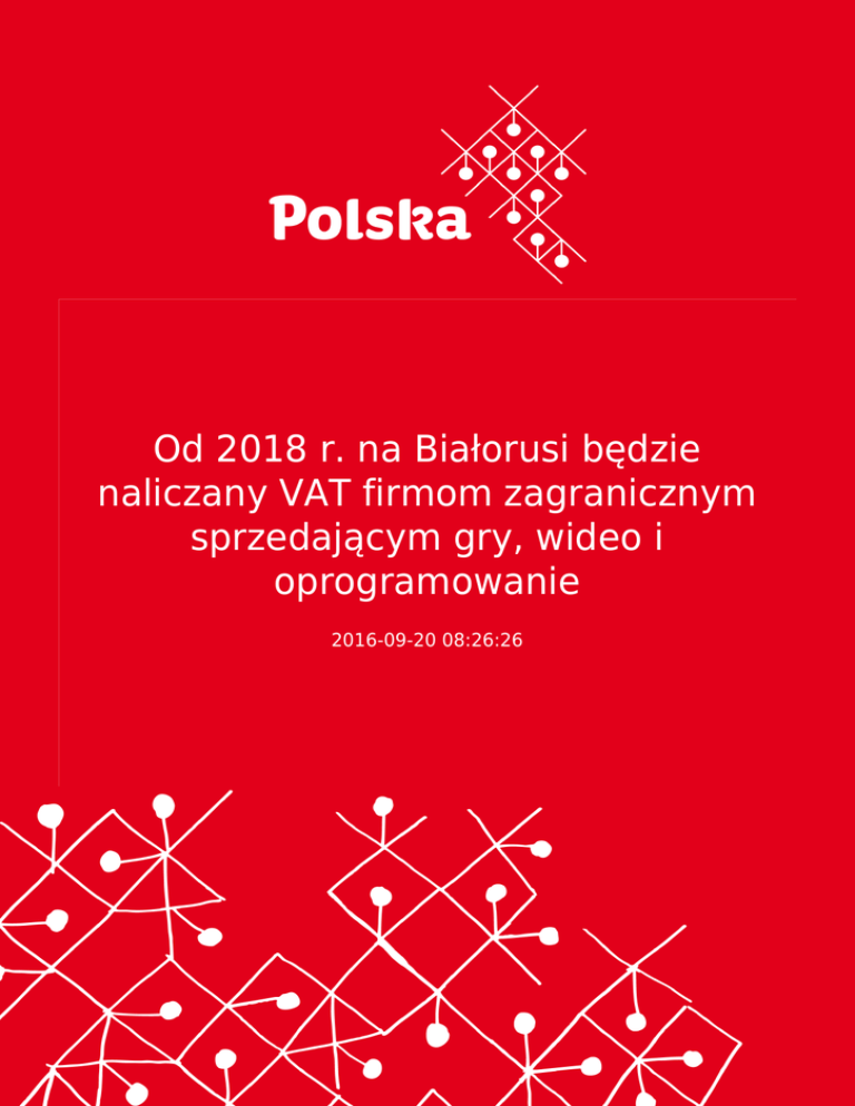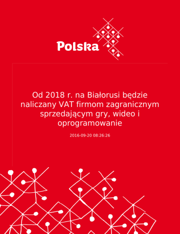 Od 2018 r. na Białorusi będzie naliczany VAT firmom zagranicznym sprzedającym gry, wideo i oprogramowanie 2016-09-20 08:26:26 2 Białoruś planuje od 2018 r. wprowadzić obowiązek podatkowy (VAT) przy sprzedaży usług elektronicznych przez firmy międzynarodowe (nierezydentów), - o tym 13 września poinformował wiceminister finansów RB Jurij Seliwestrow. Wcześniej Ministerstwo Podatków i Opłat Białorusi proponowało już opodatkowanie usług elektronicznych świadczonych przez firmy zagraniczne na rzecz obywateli Białorusi. Chodziło o sprzedaż aplikacji mobilnych, utworów muzycznych, książek, filmów, gier itd. Według wiceministra, w Rosji takie prawo będzie obowiązywać już od 2017 r. 3