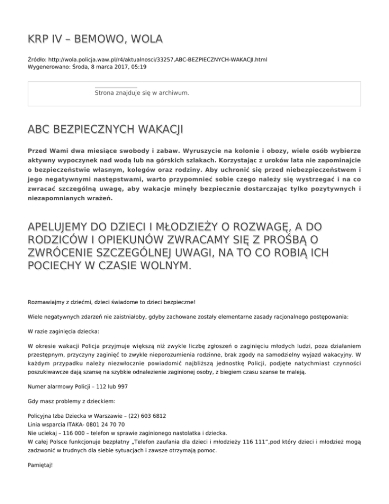 KRP IV – BEMOWO, WOLA ABC BEZPIECZNYCH WAKACJI