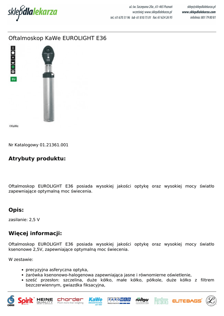 Oftalmoskop KaWe EUROLIGHT E36 Więcej