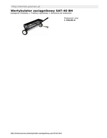 http://wimet.poznan.pl Wertykulator zaciągnikowy SAT-40 BH kategoria: Produkty > Traktory ogrodowe > Akcesoria do traktorów Producent: inne 1 150,00 zł http://wimet.poznan.pl/wertykulator-zaciagnikowy-sat-40-bh.html