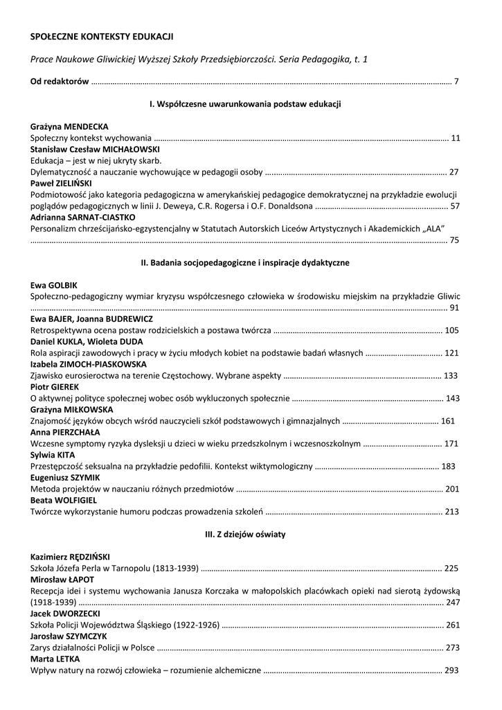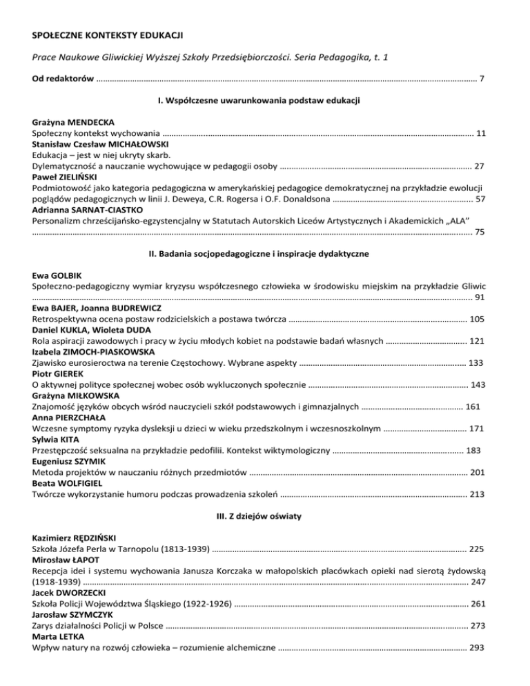 SPOŁECZNE KONTEKSTY EDUKACJI Prace Naukowe Gliwickiej