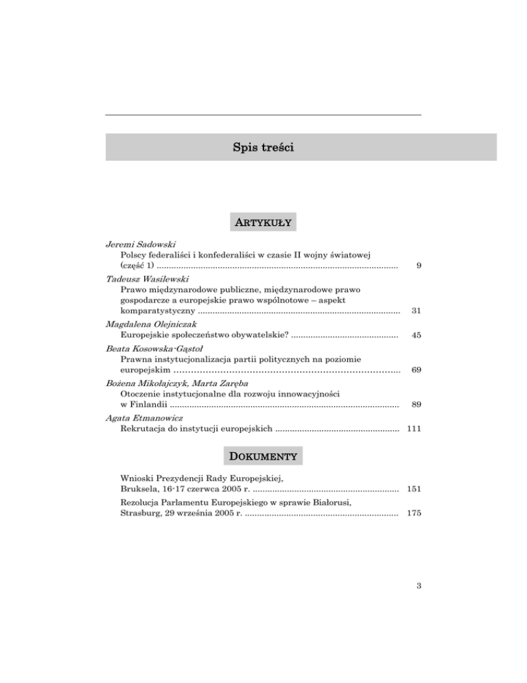 Spis treści - Centrum Europejskie UW