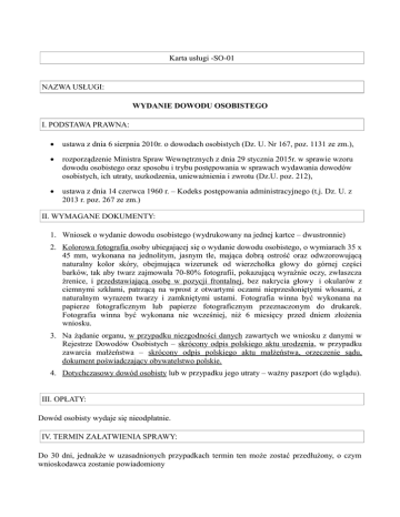 Karta usługi -SO-01 NAZWA USŁUGI: WYDANIE DOWODU