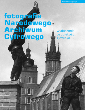 www.nac.gov.pl fotografie Narodowego Archiwum Cyfrowego wydarzenia osobistości zjawiska www.nac.gov.pl Narodowe Archiwum Cyfrowe to jedno z trzech centralnych archiwów państwowych. Główne zadania NAC: • archiwizacja materiałów cyfrowych, w tym „dokumentu elektronicznego”; • archiwizacja zdjęć, nagrań dźwiękowych i filmów; • digitalizacja tradycyjnych materiałów archiwalnych; • udostępnianie cyfrowych informacji i materiałów archiwalnych, również on-line. Archiwalia NAC: 14 milionów fotografii (od lat 40. XIX wieku aż po czasy współczesne) 30 tysięcy nagrań dźwiękowych (lata 1919-2007) 2,5 tysiąca filmów (lata 1928-1993) Zbiory NAC on-line Ponad 100 tysięcy fotografii oraz 20 tysięcy opisów nagrań dostępnych jest na www.nac.gov.pl o NAC www.nac.gov.pl Świat, którego nie ma Zdjęcia, które znajdują się w zbiorach Naroodowego Archiwum Cyfrowego, dokumentują ponad 100 lat historii Polski. W tym czasie miały miejsce dwie wojny światowe, powstała i upadła II Rzeczpospolita, rozpoczęła i zakończyła istnienie Polska Rzeczpospolita Ludowa, narodził się obecny ustrój. Przeminęły pokolenia ludzi, a także mody, style w sztuce i architekturze oraz rozwiązania technologiczne. Jednym z najbardziej namacalnych śladów tych wydarzeń i procesów są archiwalia NAC. Przykładowe zespoły fotografii • Ilustrowany Kurier Codzienny | jedyna tak wszechstronna dokumentacja wizualna dwudziestolecia międzywojennego. • Wydawnictwo Prasowe Kraków-Warszawa | zbiór fotografii wytwarzanej przez propagandę niemiecką w okresie II wojny światowej; • Archiwa fotograficzne Stefana Bałuka, Tadeusza Szumańskiego, Władysława Chomy, Władysława Gryksztasa, Czesława Datki oraz Stefana Rassalskiego | świadectwa II wojny światowej w Polsce oraz na świecie; • Centralna Agencja Fotograficzna | zdjęcia wykonane dla największej gromadzącej zdjęcia instytucji w okresie PRL; • Archiwa fotograficzne Eugenii Trzeciakowej, Zbyszka Siemaszki, Edwarda Hartwiga | zdjęcia dokumentujące Polskę w drugiej połowie XX wieku, wykonane przez niezależnych fotografików; • Zbiór fotografii dotyczących obchodów Tysiąclecia Chrztu Polski | kilkaset zdjęć wykonanych przez anonimowych fotografów, upamiętniające 1966 rok. Różnorodne techniki Dagerotypy, ambrotypy, ferrotypy, negatywy na szkle i błonie – w zbiorach NAC znajdują się przykłady wszystkich najważniejszych technik fotograficznych stosowanych w XIX i XX wieku. fotografie Narodowego Archiwu Cyfrowego polityka Podpisanie konstytucji z kwietnia 1935 roku |1-A-1107-1 Wydarzenia polityczne, wybory i plebiscyty, codzienna praca parlamentarzystów i rządu – wszystkie te wydarzenia z ostatnich blisko 100 lat skrzętnie dokumentowali foto- Wybory do Sejmu, 1969 |40-222-22 grafowie. Ich praca znajduje odbicie w bogactwie zdjęć NAC, poświęconych życiu politycznemu Polski w XX wieku. Plebiscyt na Śląsku, 1921 | 1-H-422 Wojna balonowa, 1955 | 36-277-3 Wybory do Sejmu, 1930 | 1-A-827-1 Otwarcie sesji sejmowej, 1933 | 1-A-874-1 parlament| agitacja i wybory | partie | politycy rządy | dyplomacja | ceremonie i wydarzenia II wojna światowa Niszczyciel ORP „Błyskawica”, 1937 | 1-W-1997-2 Woroneż. Fragment zniszczonego miasta, 1942 | 2-1789 Berlin. Wizyta Wiaczesława Mołotowa, 1940 | 2-12603 Warszawa. Ruiny Zamku Królewskiego, 1939 | 2-168 NAC dysponuje bogatą dokumentacją dotyczącą II wojny światowej. Pochodzi ona zarówno z propagandowego niemieckiego Wydawnictwa Prasowego Kraków – Warszawa, jak i prywatnych archiwów polskich fotografów, takich jak Stefana Bałuk, Tadeusz Szumański, Władysław Choma, Władysław Powstanie Warszawskie, 1944 | 13-143 Gryksztas oraz Czesław Datka. W zbiorach NAC znajduje się również kilkaset fotografii z Powstania Warszawskiego, wykonanych w większości dla Biura Informacji i Propagandy Komendy Głównej Armii Krajowej. Niemieccy żołnierze łamią polski szlaban na granicy w Sopocie rankiem 1 września 1939 roku | 37-196-1 okupacja Polski | Powstanie Warszawskie | teatry działań wojennych | III Rzesza Niemiecka | militaria społeczeństwo Rocznica 3 maja w Łodzi, 1916 | 1-H-46 Pogrzeb księdza Jerzego Popiełuszki, 1984 | 42-L-407-14 Obóz ZHP, 1933 | 1-P-588-7 Koronacja króla polskich Cyganów, 1937 | 1-P-2312-9 Fotografie Nadowego Archiwum Cyfrowego wieloaspektowo ukazują polskie społeczeństwo na przestrzeni ponad 100 lat. Dzięki intensywnej pracy fotoreporterów „Ilustrowanego Kuriera Codziennego”, w NAC znajdują się unikatowe materiały z dwudziestolecia międzywojennego, dokumentujące rodzenie się struktur społecznych II Rzeczypospoiltej wielu narodów, kultur i interesów. Obchody Tysiąclecia Chrztu Polski w Częstochowie, 1966 | 19-16-6 Wasyl Denidiuk z Kossowa na huculszczyźnie z darami imieninowymi dla Józefa Piłsudskiego, 1934 | 1-A-145-19 Okres powojenny udokumentowali nie tylko fotograficy Centralnej Agencji Fotograficznej, ale również tacy niezależni twórcy jak Edward Hartwig, Eugenia Trzeciakowa i Zbyszko Siemaszko. Na zdjęciach zgromadzonych w NAC można dostrzec nie tylko budowę systemu socjalistycznego, ale także sprzeciw Polaków wobec ówczesnych władz. Manifestacja członków Ligi Morskiej i Kolonialnej na rzecz uzyskania przez Polskę kolonii, 1938 | 1-P-354-2 organizacje społeczne| protesty i manifestacje uroczystości | grupy społeczne i mniejszości społeczeństwo W restauracji Kosza w Krakowie, 1934 | 1-G-7056-1 Wystawa psów w Katowicach, 1936 | 1-G-1113-7 Dwudziestolecie międzywojenne obfitowało w rozrywki i spotkania towarzyskie. Ówczesna moda oraz rodząca się awangarda tworzyły koloryt tamtych lat, na które obecnie spogląda się z wielką nostalgią. Barwne, wielokulturowe społeczeństo polskie, którego kształt bezpowrotnie odmieniła II wojna światowa, można podejrzeć na zgromadzonych zdjęciach NAC. Zabawa taneczna w lokalu rozrywkowym w Gdyni, 19