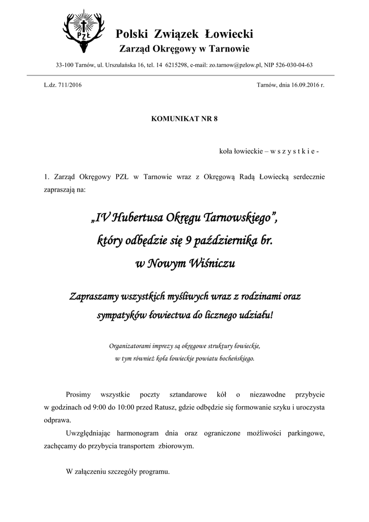 Komunikat nr 8 - PZŁ ZO Tarnów