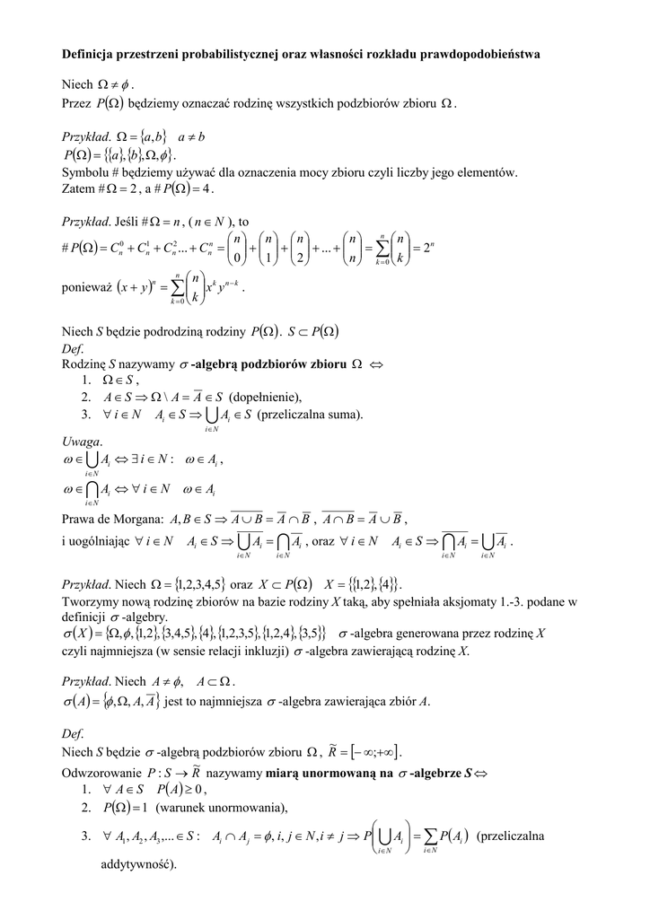 Przykład. Jeśli # Ω = n , ( n ∈ N ), to