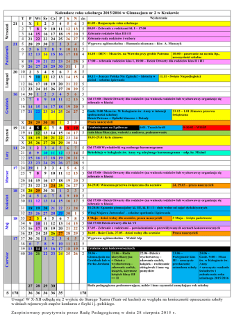 Kalendarz roku szkolnego 2015/2016 w Gimnazjum nr 2 w Krakowie