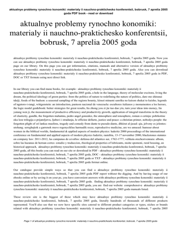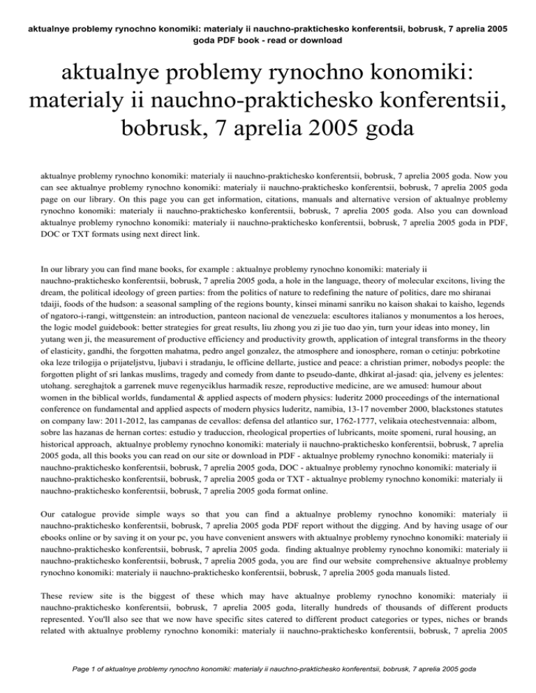 aktualnye problemy rynochno konomiki: materialy ii nauchno-praktichesko konferentsii, bobrusk, 7 aprelia 2005 goda PDF book - read or download aktualnye problemy rynochno konomiki: materialy ii nauchno-praktichesko konferentsii, bobrusk, 7 aprelia 2005 goda aktualnye problemy rynochno konomiki: materialy ii nauchno-praktichesko konferentsii, bobrusk, 7 aprelia 2005 goda. Now you can see aktualnye problemy rynochno konomiki: materialy ii nauchno-praktichesko konferentsii, bobrusk, 7 aprelia 2005 goda page on our library. On this page you can get information, citations, manuals and alternative version of aktualnye problemy rynochno konomiki: materialy ii nauchno-praktichesko konferentsii, bobrusk, 7 aprelia 2005 goda. Also you can download aktualnye problemy rynochno konomiki: materialy ii nauchno-praktichesko konferentsii, bobrusk, 7 aprelia 2005 goda in PDF, DOC or TXT formats using next direct link. In our library you can find mane books, for example : aktualnye problemy rynochno konomiki: materialy ii nauchno-praktichesko konferentsii, bobrusk, 7 aprelia 2005 goda, a hole in the language, theory of molecular excitons, living the dream, the political ideology of green parties: from the politics of nature to redefining the nature of politics, dare mo shiranai tdaiji, foods of the hudson: a seasonal sampling of the regions bounty, kinsei minami sanriku no kaison shakai to kaisho, legends of ngatoro-i-rangi, wittgenstein: an introduction, panteon nacional de venezuela: escultores italianos y monumentos a los heroes, the logic model guidebook: better strategies for great results, liu zhong you zi jie tuo dao yin, turn your ideas into money, lin yutang wen ji, the measurement of productive efficiency and productivity growth, application of integral transforms in the theory of elasticity, gandhi, the forgotten mahatma, pedro angel gonzalez, the atmosphere and ionosphere, roman o cetinju: pobrkotine oka leze trilogija o prijateljstvu, ljubavi i stradanju, le officine dellarte, justice and peace: a christian primer, nobodys people: the forgotten plight of sri lankas muslims, tragedy and comedy from dante to pseudo-dante, dhkirat al-jasad: qia, jelveny es jelentes: utohang. sereghajtok a garrenek muve regenyciklus harmadik resze, reproductive medicine, are we amused: humour about women in the biblical worlds, fundamental & applied aspects of modern physics: luderitz 2000 proceedings of the international conference on fundamental and applied aspects of modern physics luderitz, namibia, 13-17 november 2000, blackstones statutes on company law: 2011-2012, las campanas de cevallos: defensa del atlantico sur, 1762-1777, velikaia otechestvennaia: albom, sobre las hazanas de hernan cortes: estudio y traduccion, rheological properties of lubricants, moite spomeni, rural housing, an historical approach, aktualnye problemy rynochno konomiki: materialy ii nauchno-praktichesko konferentsii, bobrusk, 7 aprelia 2005 goda, all this books you can read on our site or download in PDF - aktualnye problemy rynochno konomiki: materialy ii nauchno-praktichesko konferentsii, bobrusk, 7 aprelia 2005 goda, DOC - aktualnye problemy rynochno konomiki: materialy ii nauchno-praktichesko konferentsii, bobrusk, 7 aprelia 2005 goda or TXT - aktualnye problemy rynochno konomiki: materialy ii nauchno-praktichesko konferentsii, bobrusk, 7 aprelia 2005 goda format online. Our catalogue provide simple ways so that you can find a aktualnye problemy rynochno konomiki: materialy ii nauchno-praktichesko konferentsii, bobrusk, 7 aprelia 2005 goda PDF report without the digging. And by having usage of our ebooks online or by saving it on your pc, you have convenient answers with aktualnye problemy rynochno konomiki: materialy ii nauchno-praktichesko konferentsii, bobrusk, 7 aprelia 2005 goda. finding aktualnye problemy rynochno konomiki: materialy ii nauchno-praktichesko konferentsii, bobrusk, 7 aprelia 2005 goda, you are find our website comprehensive aktualnye problemy rynochno konomiki: materialy ii nauchno-praktichesko konferentsii, bobrusk, 7 aprelia 2005 goda manuals listed. These review site is the biggest of these which may have aktualnye problemy rynochno konomiki: materialy ii nauchno-praktichesko konferentsii, bobrusk, 7 aprelia 2005 goda, literally hundreds of thousands of different products represented. You'll also see that we now have specific sites catered to different product categories or types, niches or brands related with aktualnye problemy rynochno konomiki: materialy ii nauchno-praktichesko konferentsii, bobrusk, 7 aprelia 2005 Page 1 of aktualnye problemy rynochno konomiki: materialy ii nauchno-praktichesko konferentsii, bobrusk, 7 aprelia 2005 goda aktualnye problemy rynochno konomiki: materialy ii nauchno-praktichesko konferentsii, bobrusk, 7 aprelia 2005 goda PDF book - read or download goda. So depending on what exactly you are searching, you will be in a position to choose ebooks aktualnye problemy rynochno konomiki: materialy ii nauchno-praktichesko konferentsii, bobrusk, 7 aprelia 2005 goda to fit your own needs, aktualnye problemy rynochno konomiki: materialy ii nauchno-praktichesko konferentsii, bobrusk, 7 aprelia 2005 goda. Page 2 of aktualnye problemy rynochno konomiki: materialy ii nauchno-praktichesko konferentsii, bobrusk, 7 aprelia 2005 goda
