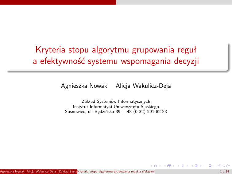 Nowak A., Wakulicz-Deja A., "Aglomeracyjne metody tworzenia skupień reguł