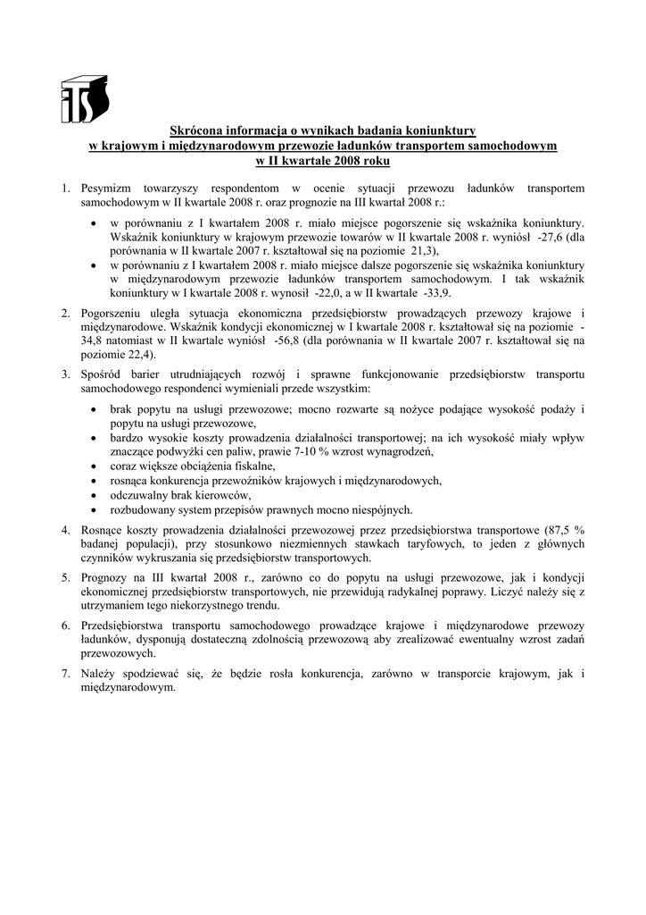 Skrócona informacja o wynikach badania koniunktury w krajowym i
