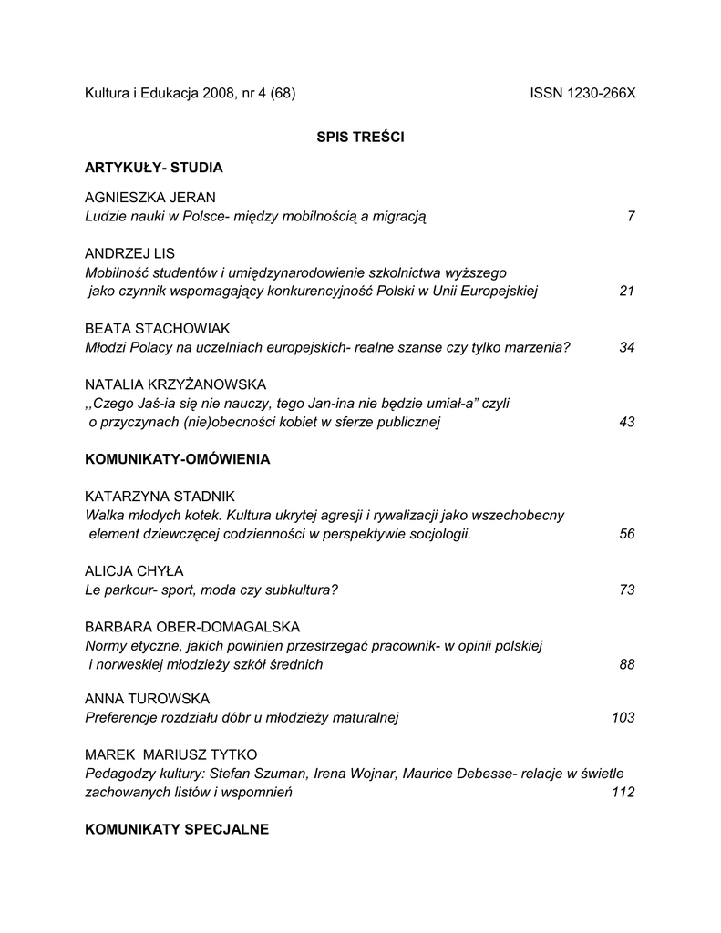 Kultura i Edukacja 2008, nr 4 (68) ISSN 1230