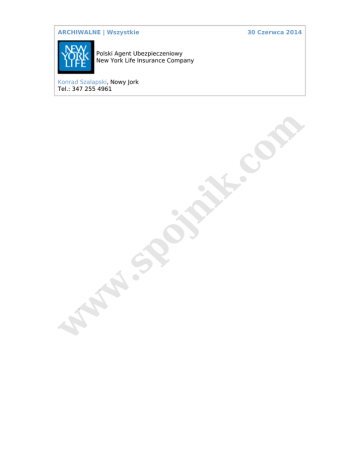 ARCHIWALNE | Wszystkie 30 Czerwca 2014 Polski Agent Ubezpieczeniowy New York Life Insurance Company w w w .s po jn ik .c o m Konrad Szalapski, Nowy Jork Tel.: 347 255 4961