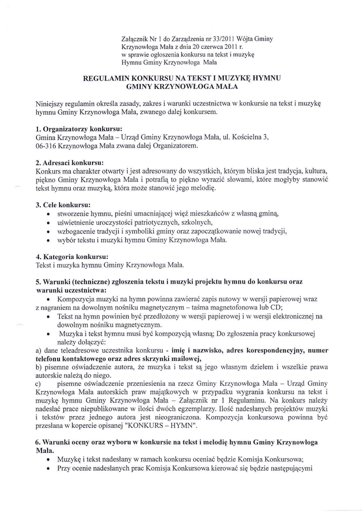 mwykę hymnu Gminy Krzynowłoga Mała Zalącznik
