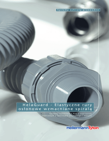 Systemy ochrony przewodów HelaGuard - Elastyczne rury osłonowe wzmacniane spiralą Systemy osłonowe z PVC z osprzętem końcowym z tworzywa sztucznego i metalu Systemy ochrony przewodów Elastyczne rury osłonowe wzmacniane spiralą Rury osłonowe z PVC • PSR, wzmocnione spiralą Elastyczna rura z PVC wzmocniona spiralą z twardego PVC, wewnętrznie gładka. Właściwości • Wysoka elastyczność • Odporność na skręcanie • Materiał samogasnący • Łatwe wprowadzanie przewodów • Zastosowanie z osprzętem z tworzywa sztucznego PSR • Kolory: szary; czarny, zielony (olejoodporny), niebieski (odporny na temperatury) na zapytanie Zastosowanie Budowa maszyn i urządzeń, automatyka, przemysł stoczniowy. Rury PSR są bardzo elastyczne i umożliwiają łatwe wprowadzenie przewodów. Dane materiału Materiał Temp. pracy Palność materiału Polichlorek winylu (PVC) -20 °C do +70 °C samogasnący zgodnie z EN 61386 ü ! Rury PSR o podwyższonej odporności temperaturowej (Kolor: niebieski) lub olejoodporne (Kolor: zielony) dostępne są na zamówienie. Dane techniczne Nr art. Typ 166-40001 PSR12 Średnica nominalna Średnica zewnętrzna 12 14,5 Średnica Promień wewnętrzna gięcia 10,0 25 Ilość w rolce (m) Kolor 71 30 Szary (GY) 166-40002 PSR16 16 16,5 12,0 25 76 30 Szary (GY) 166-40003 PSR20 20 21,0 16,0 35 112 30 Szary (GY) 166-40004 PSR25 25 27,5 22,0 45 153 30 Szary (GY) 166-40005 PSR32 32 33,5 28,0 60 327 30 Szary (GY) 166-40006 PSR40 40 41,0 35,0 80 448 30 Szary (GY) 166-40007 PSR50 50 46,4 40,0 105 725 30 Szary (GY) 166-40008 PSR63 63 57,0 50,0 120 948 30 Szary (GY) Wszystkie dane w mm. Zastrzegamy sobie prawo do ewentualnych zmian technicznych. 2 Masa (g/m) Systemy ochrony przewodów Elastyczne rury osłonowe wzmacniane spiralą Rury osłonowe z PVC • PSRSC, wzmocnione spiralą Elastyczna rura z PVC wzmocniona spiralą z twardego PVC, zewnętrznie i wewnętrznie gładka. Właściwości • Duża elastyczność • Łatwe czyszczenie gładkiej ścianki zewnętrznej • Materiał samogasnący • Łatwe wprowadzanie przewodów • Ograniczona odporność na skręcanie • Zastosowanie z osprzętem z tworzywa sztucznego PSR oraz metalowym PSRSC • Kolory: szary; czarny, zielony (olejoodporny), niebieski (odporny na temperatury), pomarańczowy (bardzo elastyczny) na zapytanie Rury PSRSC są bardzo elastyczne i umożliwiają łatwe wprowadzenie przewodów, a także łatwe czyszczenie. Zastosowanie Budowa maszyn i urządzeń, automatyka, przemysł spożywczy, przemysł stoczniowy. Dane materiału Materiał Temp. pracy Palność materiału Polichlorek winylu (PVC) -5 °C do +70 °C samogasnący zgodnie z EN 61386 ü ! Rury PSRSC o podwyższonej elastyczności (Kolor: pomarańczowy), olejoodporne (Kolor: zielony) lub o podwyższonej odporności temperaturowej (Kolor: niebieski) dostępne są na zamówienie. Dane techniczne Nr art. Typ 166-40301 PSRSC12 Średnica nominalna Średnica zewnętrzna 12 14,2 Średnica Promień wewnętrzna gięcia 10,0 50 Masa (g/m) Ilość w rolce (m) Kolor 76 30 Szary (GY) 166-40302 PSRSC16 16 17,8 12,6 50 139 30 Szary (GY) 166-40303 PSRSC20 20 21,1 16,0 70 174 30 Szary (GY) 166-40304 PSRSC25 25 26,4 21,0 90 235 30 Szary (GY) 166-40305 PSRSC32 28 33,1 26,5 140 327 30 Szary (GY) 166-40306 PSRSC40 40 41,8 35,4 190 448 30 Szary (GY) 166-40307 PSRSC50 50 47,9 40,0 240 725 30 Szary (GY) 166-40308 PSRSC63 63 59,7 51,3 270 948 30 Szary (GY) Wszystkie dane w mm. Zastrzegamy sobie prawo do ewentualnych zmian technicznych. 3 Systemy ochrony przewodów Elastyczne rury osłonowe wzmacniane spiralą Osprzęt końcowy do rur osłonowych z PCV wzmacnianych spiralą Dane techniczne • PSR-S Złącze proste Średnica nominalna Rozmiar gwintu Ilość w opak. 166-40701 PSR12-S-M16 12 M16 10 166-40702 PSR16-S-M16 16 M16 10 166-40703 PSR16-S-M20 16 M20 10 166-40704 PSR20-S-M20 20 M20 10 166-40705 PSR25-S-M25 25 M25 10 166-40706 PSR32-S-M32 32 M32 10 166-40707 PSR40-S-M40 40 M40 2 166-40708 PSR50-S-M50 50 M50 2 Właściwości 166-40709 PSR63-S-M63 63 M63 1 • Wysoka wytrzymałość na rozciąganie • Wysoka odporność na rozpuszczalniki i oleje • Nie zawiera halogenów, siarki i fosforu • Złącza z gwintem metrycznym dostarczane są z nakrętką kontrującą • Do stosowania z rurami PSR, jak i PSRSC Wszystkie dane w mm. Zastrzegamy sobie prawo do ewentualnych zmian Złącze proste wykonane z PA66 ze stałym gwintem zewnętrznym. Z rurami PSR spełnia wymagania szczelności do poziomu IP65. Z rurami PSRSC spełnia wymagania szczelności do poziomu IP67. Nr art. Typ technicznych. Dane materiału Materiał Kolor Temp. pracy Palność materiału Poliamid 6.6 (PA66) Szary (GY) -50 °C do +135 °C UL94 V2 ü nowy bezhaloge PSR-S Złącze proste z gwintem zewnętrznym. • PSR-90 Złącze kątowe 90° Złącze kątowe 90° wykonane z PA66 ze stałym gwintem zewnętrznym. Z rurami PSR spełnia wymagania szczelności do poziomu IP65. Z rurami PSRSC spełnia wymagania szczelności do poziomu IP67. ! Osprzęt końcowy z gwintem PG i w wykonaniu kątowym 45° dostępny jest na zamówienie. Właściwości • Wysoka wytrzymałość na rozciąganie • Wysoka odporność na rozpuszczalniki i oleje • Nie zawiera halogenów, siarki i fosforu • Złącza z gwintem metrycznym dostarczane są z nakrętką kontrującą • Do stosowania z rurami PSR, jak i PSRSC Dane techniczne Średnica nominalna Rozmiar gwintu Ilość w opak. 166-40801 PSR16-90-M16 16 M16 10 166-40802 PSR16-90-M20 16 M20 10 166-40803 PSR20-90-M20 20 M20 10 166-40804 PSR25-90-M25 25 M25 10 166-40805 PSR32-90-M32 32 M32 2 166-40806 PSR40-90-M40 40 M40 2 Nr art. Kolanko 90° PSR-90. Wszystkie dane w mm. Zastrzegamy sobie prawo do ewentualnych zmian technicznych. 4 Typ Systemy ochrony przewodów Elastyczne rury osłonowe wzmacniane spiralą Osprzęt końcowy do rur osłonowych z PCV wzmacnianych spiralą Dane techniczne • PSRSC-FMC Złącze proste, dociskowe 166-41001 PSRSC12-FMC-M16 12 M16 10 166-41