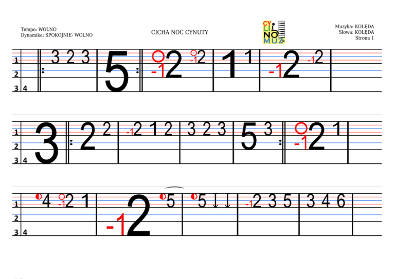 Tempo: WOLNO Dynamika: SPOKOJNIE- WOLNO CICHA NOC CYNUTY Muzyka: KOLĘDA Słowa: KOLĘDA Strona 1 Tempo: WOLNO Dynamika: SPOKOJNIE- WOLNO CICHA NOC CYNUTY Muzyka: KOLĘDA Słowa: KOLĘDA Strona 2