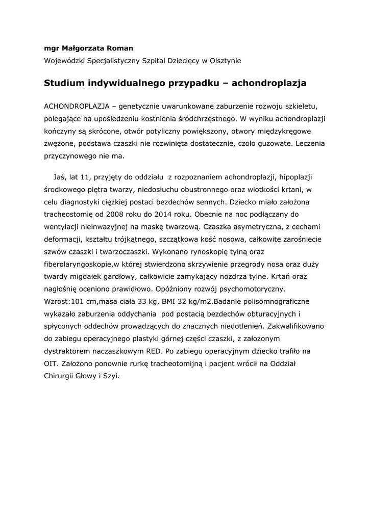 Studium indywidualnego przypadku – achondroplazja