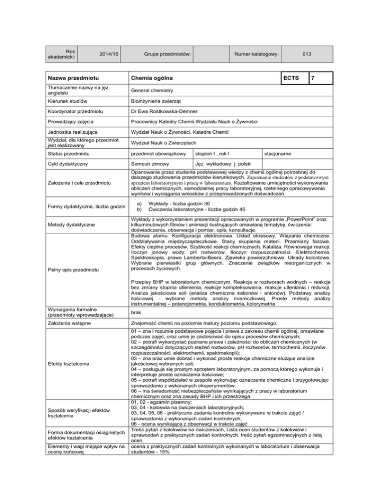 chemia ogólna_1 - Wydział Nauk o Zwierzętach